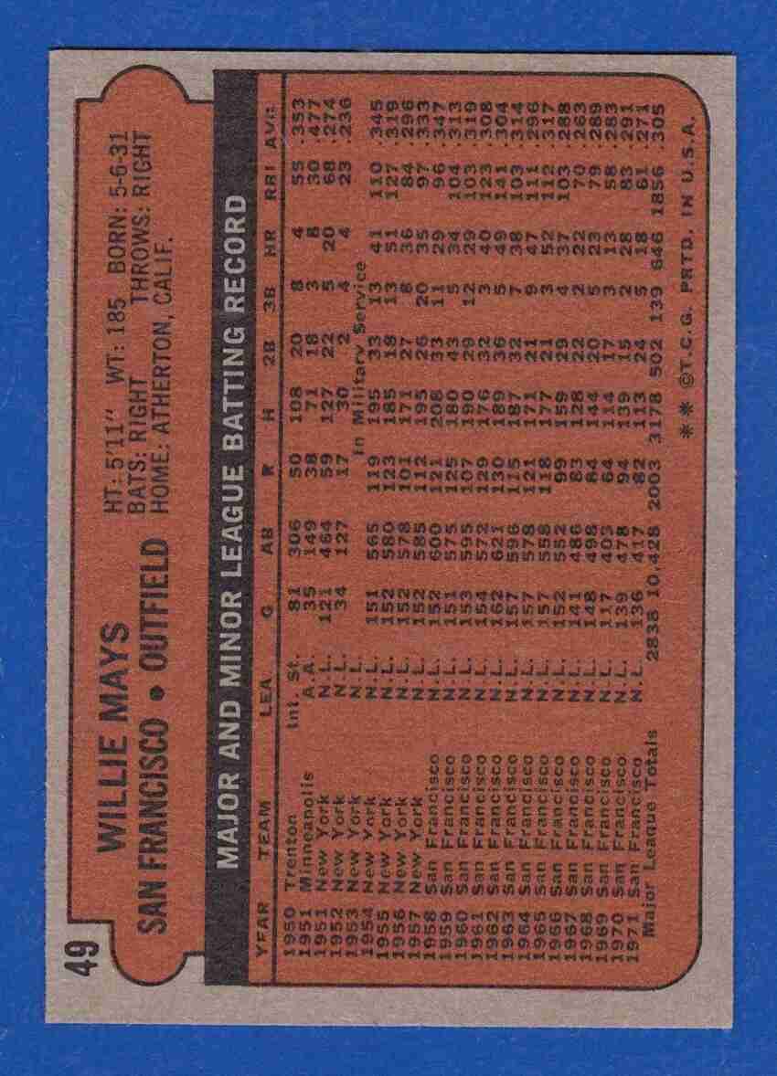 72 Topps WILLIE MAYS #49 HOF!