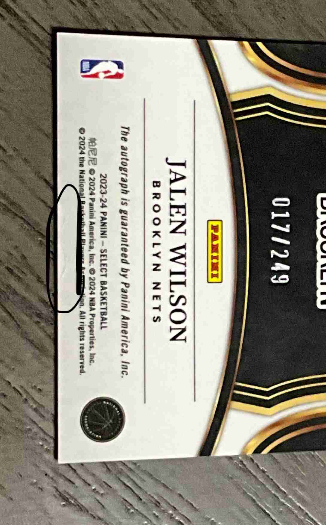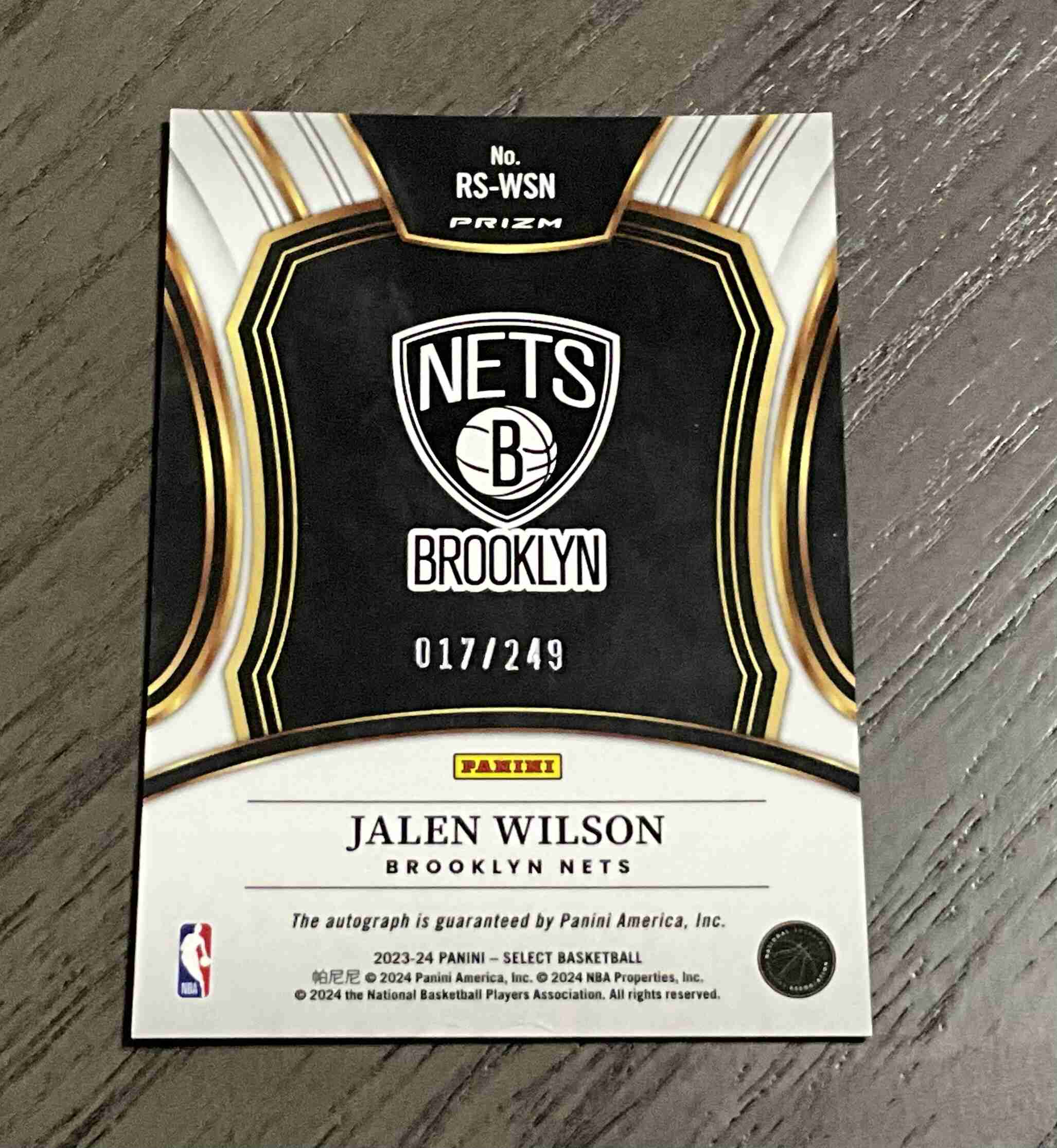 Jalen Wilson Rookie Autograph /249 23-24 Select Nets