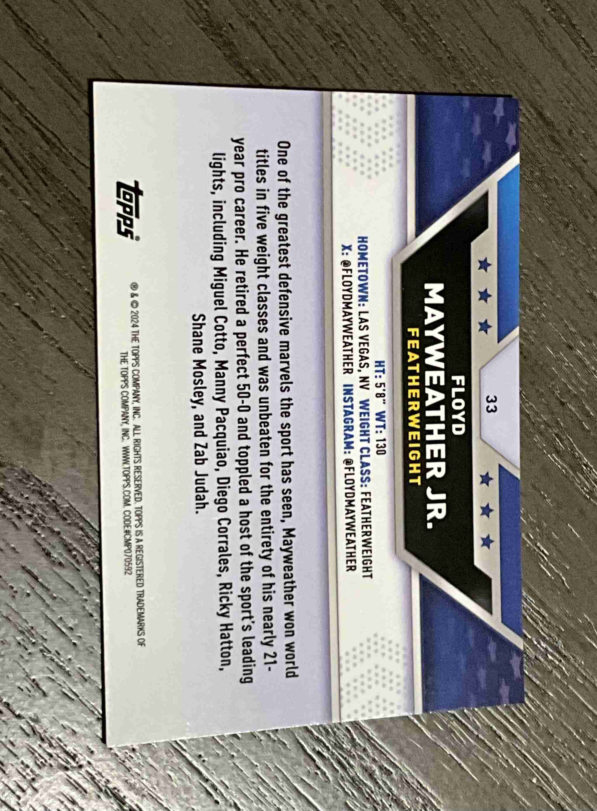 Floyd Mayweather Jr 2024 Topps Chrome Boxing # 33