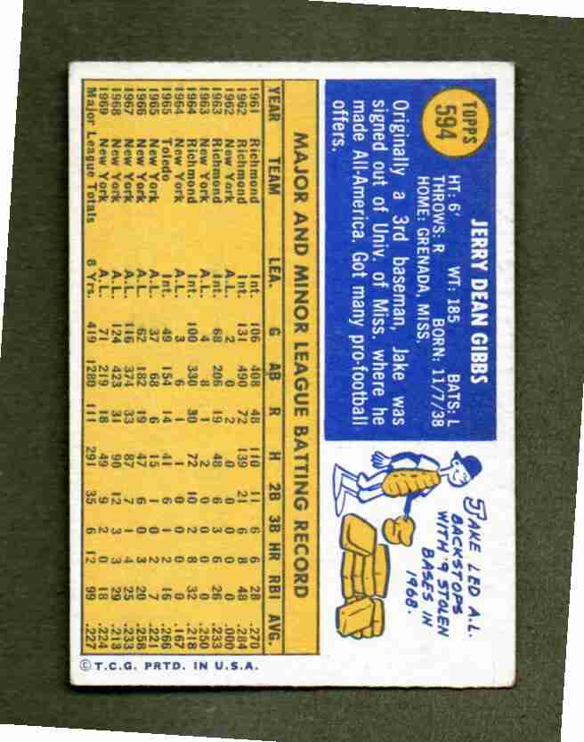 1970 Topps Hi # 594 JAKE GIBBS NY Yanks