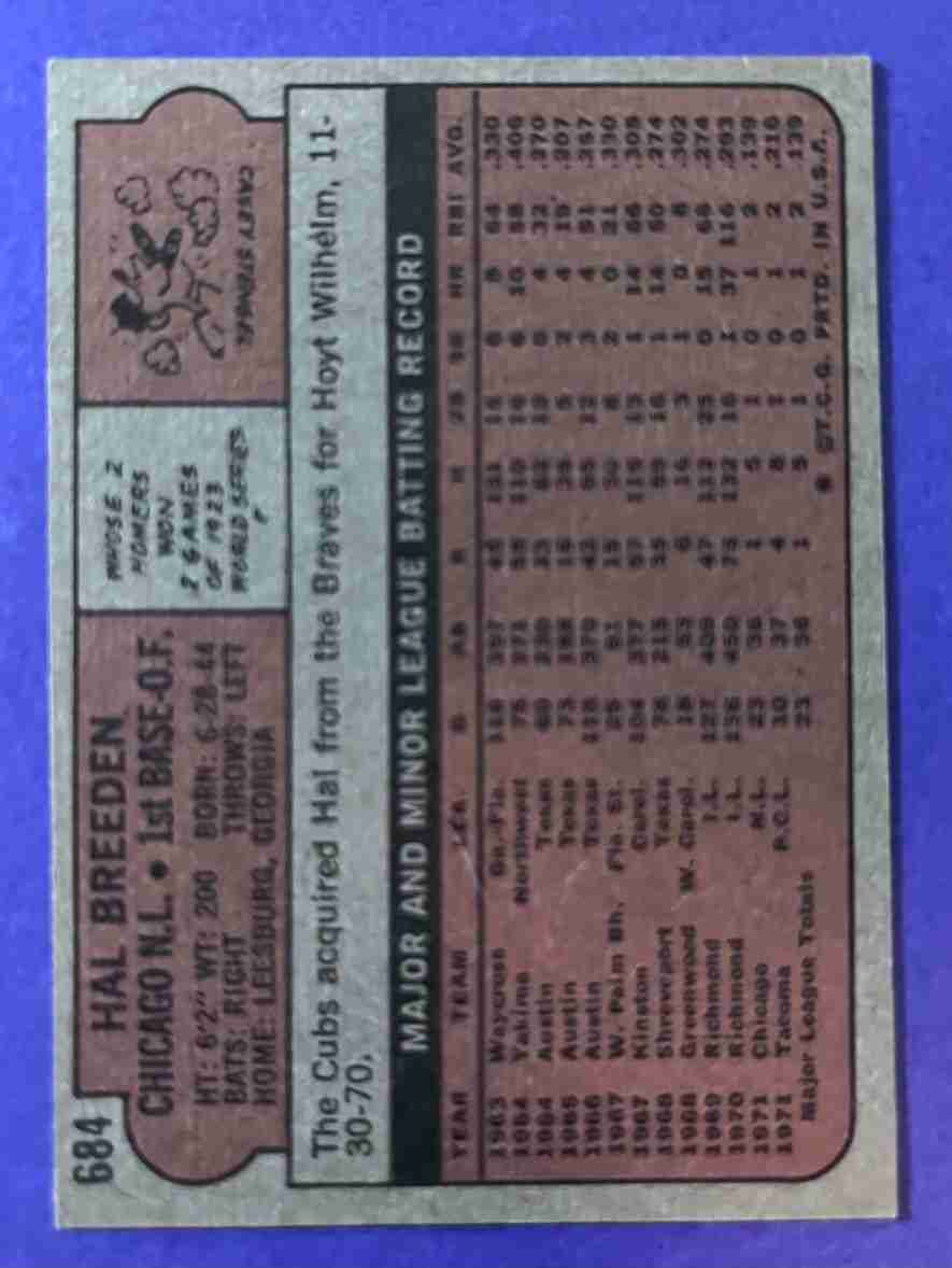 72 Topps HAL BREEDEN RC Hi #684 ++
