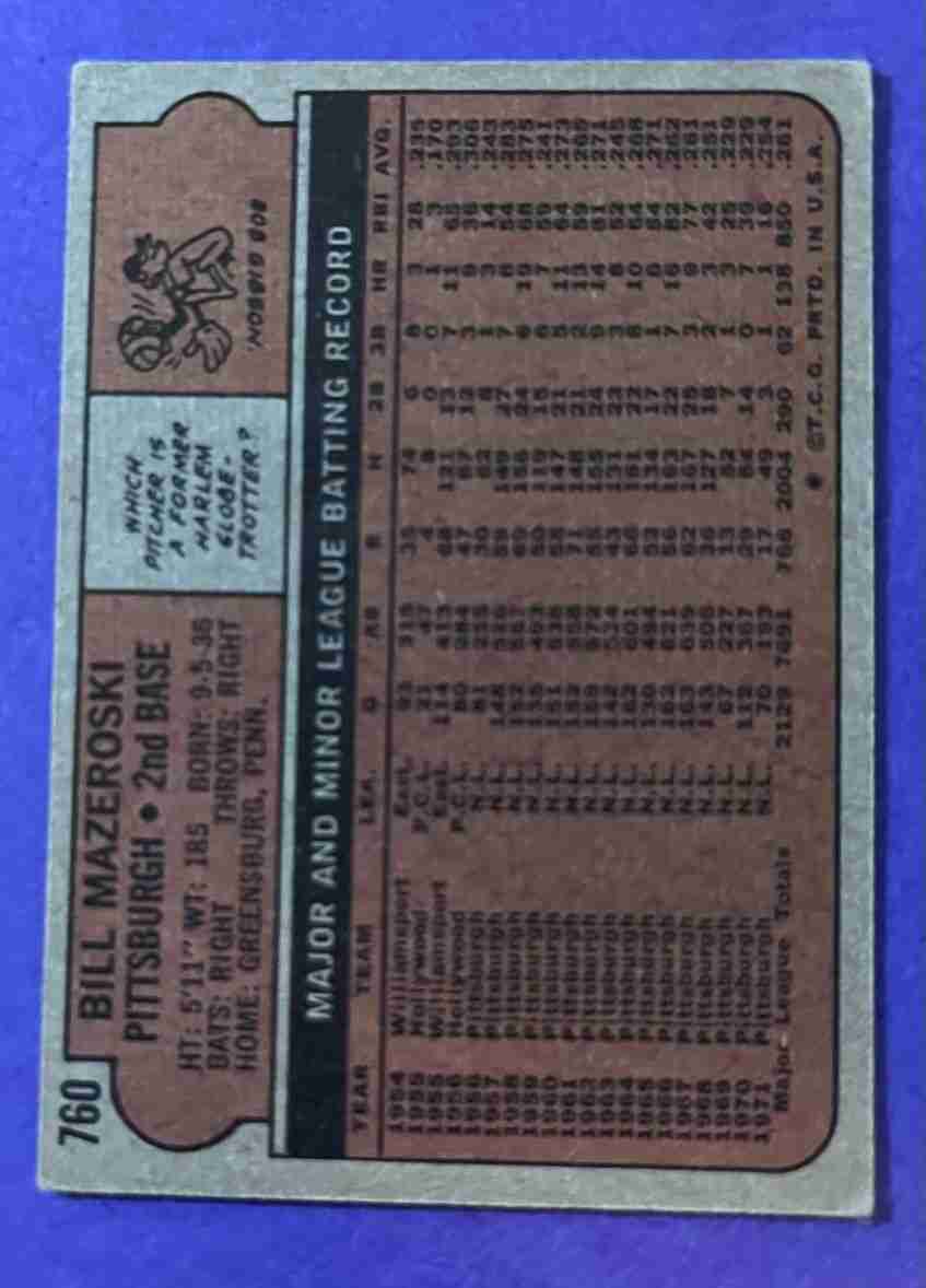 72 Topps BILL MAZEROSKI Hi #760 HOF!
