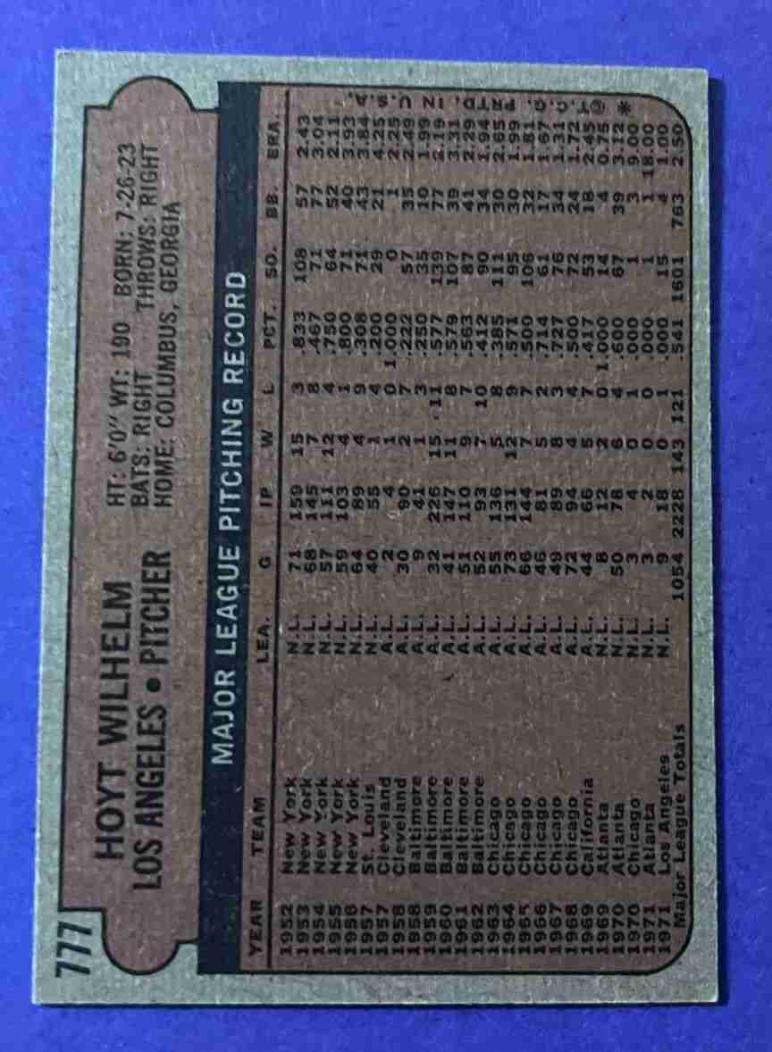 72 Topps HOYT WILHELM Hi #777 HOF!
