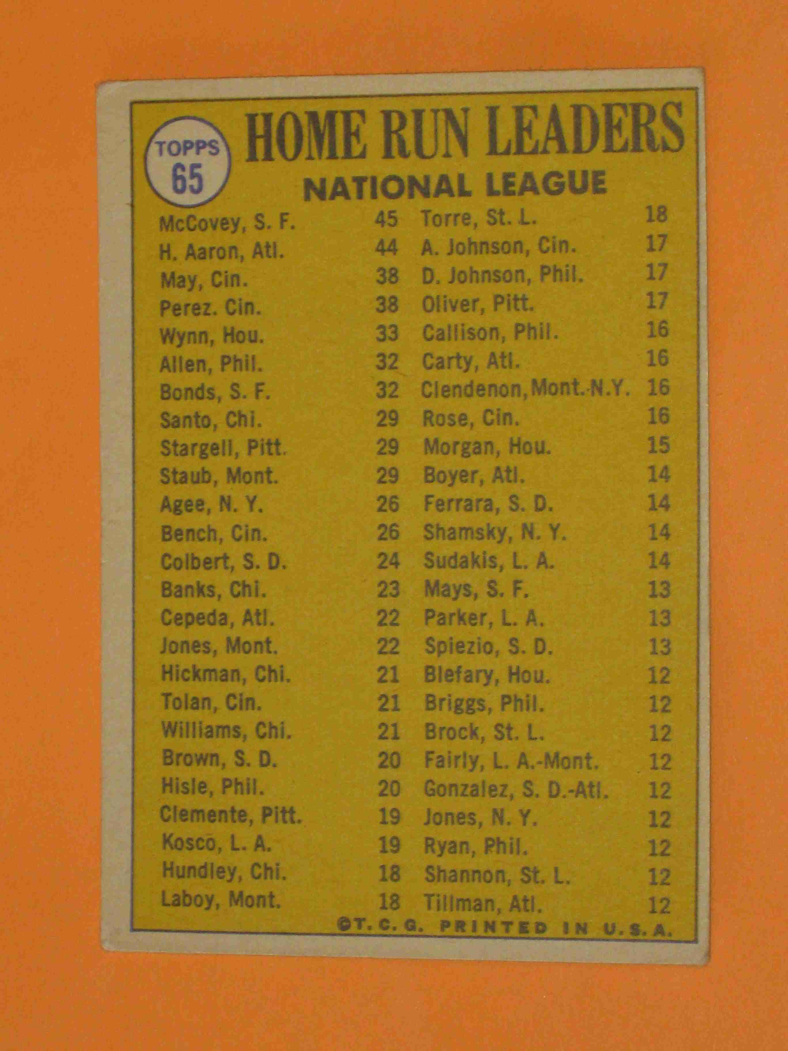 1970 Topps NL HR Ldrs #65 McCovey Aaron May