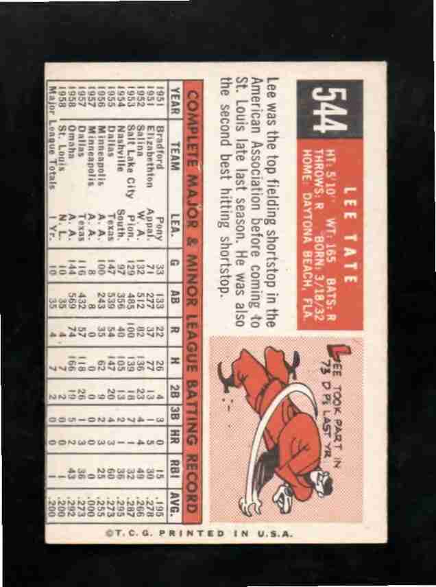 1959 Topps Hi # 544 LEE TATE St. Louis Cardinals
