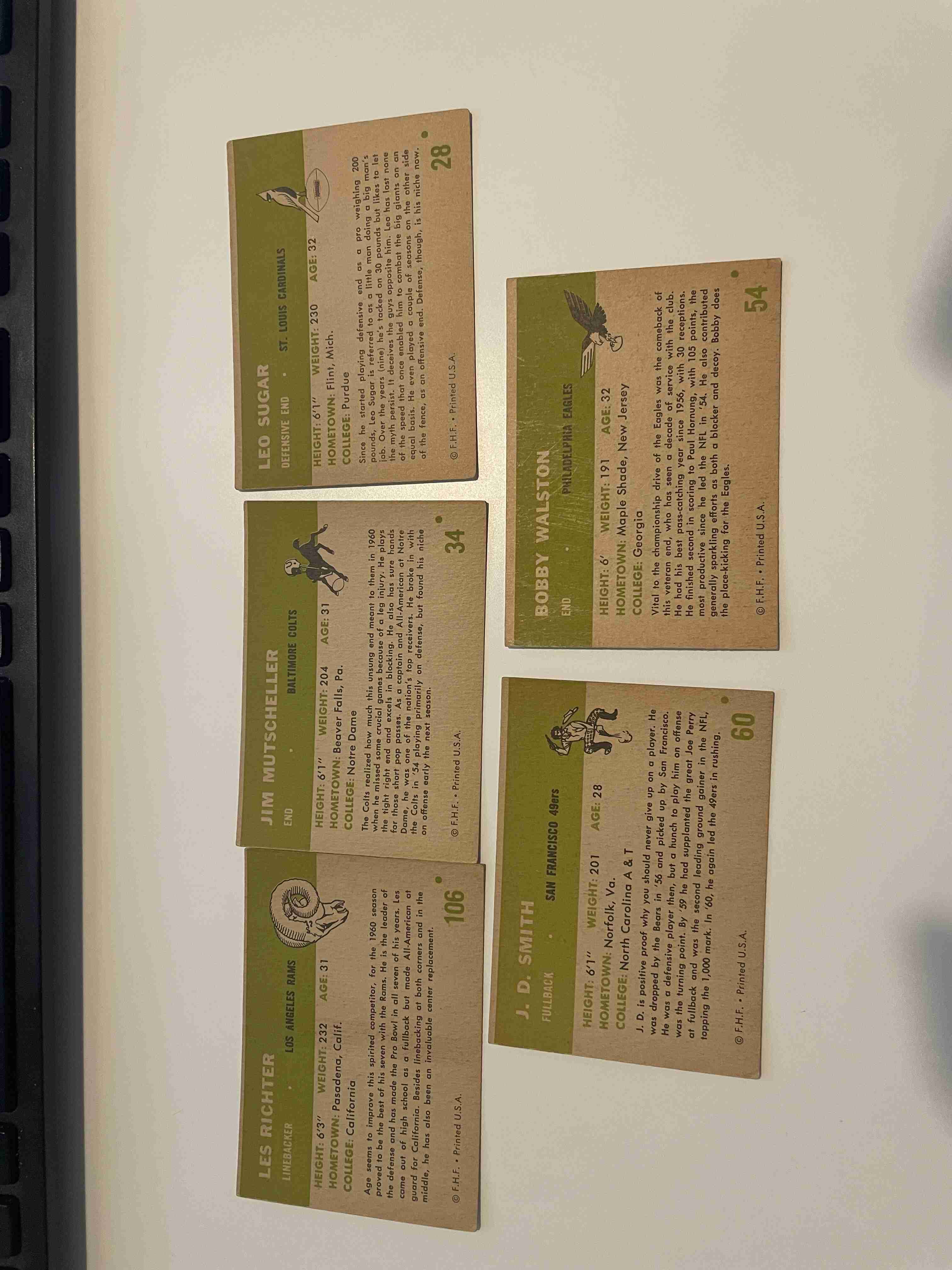 '61 Fleet Football 5 card lot #28.34.54.60.106