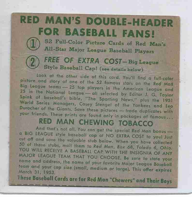 1953 Redman ~ Early Wynn Cleveland Indians HOF
