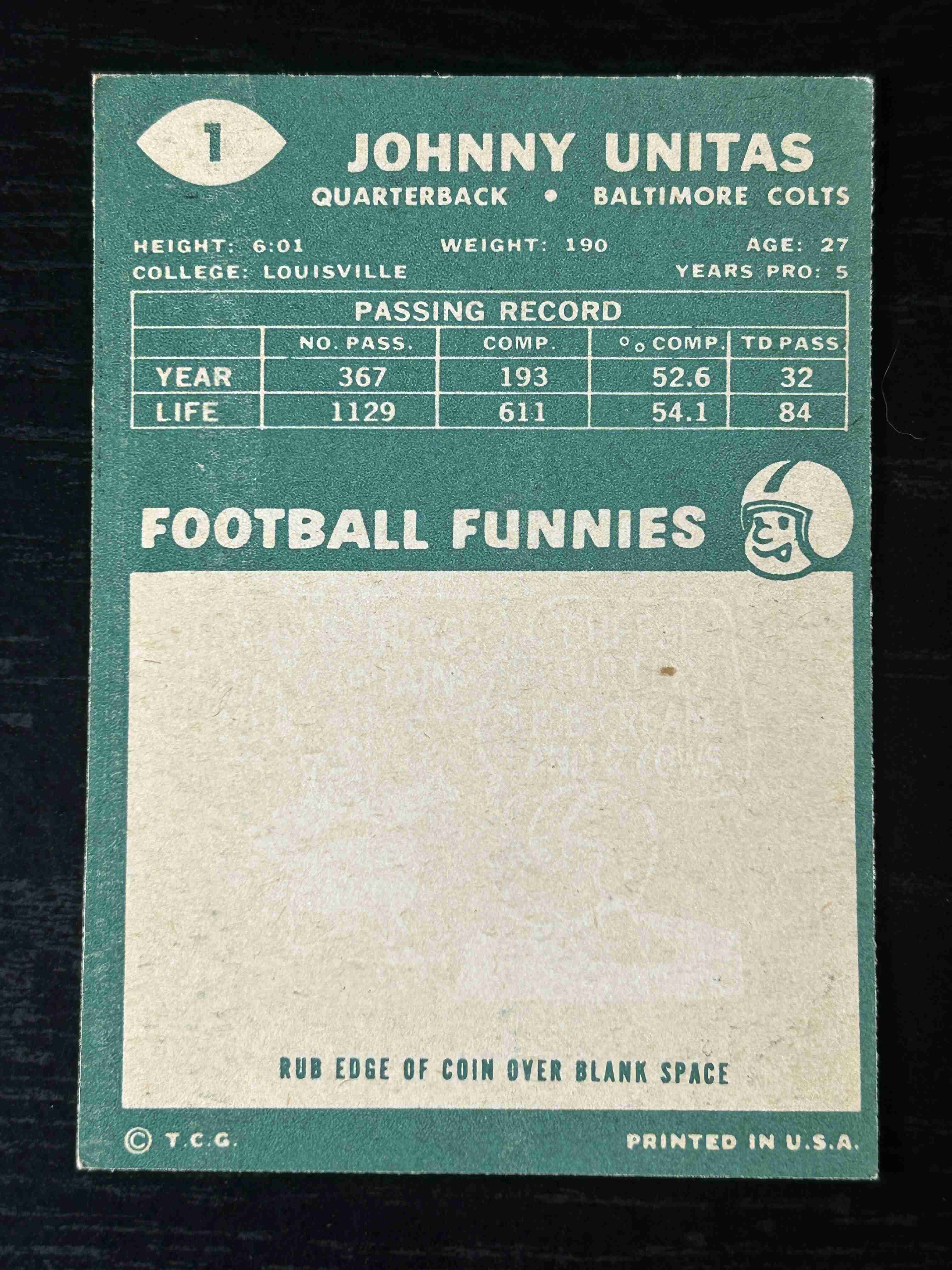 1960 Topps #1 Johnny Unitas Baltimore Colts VG-EX