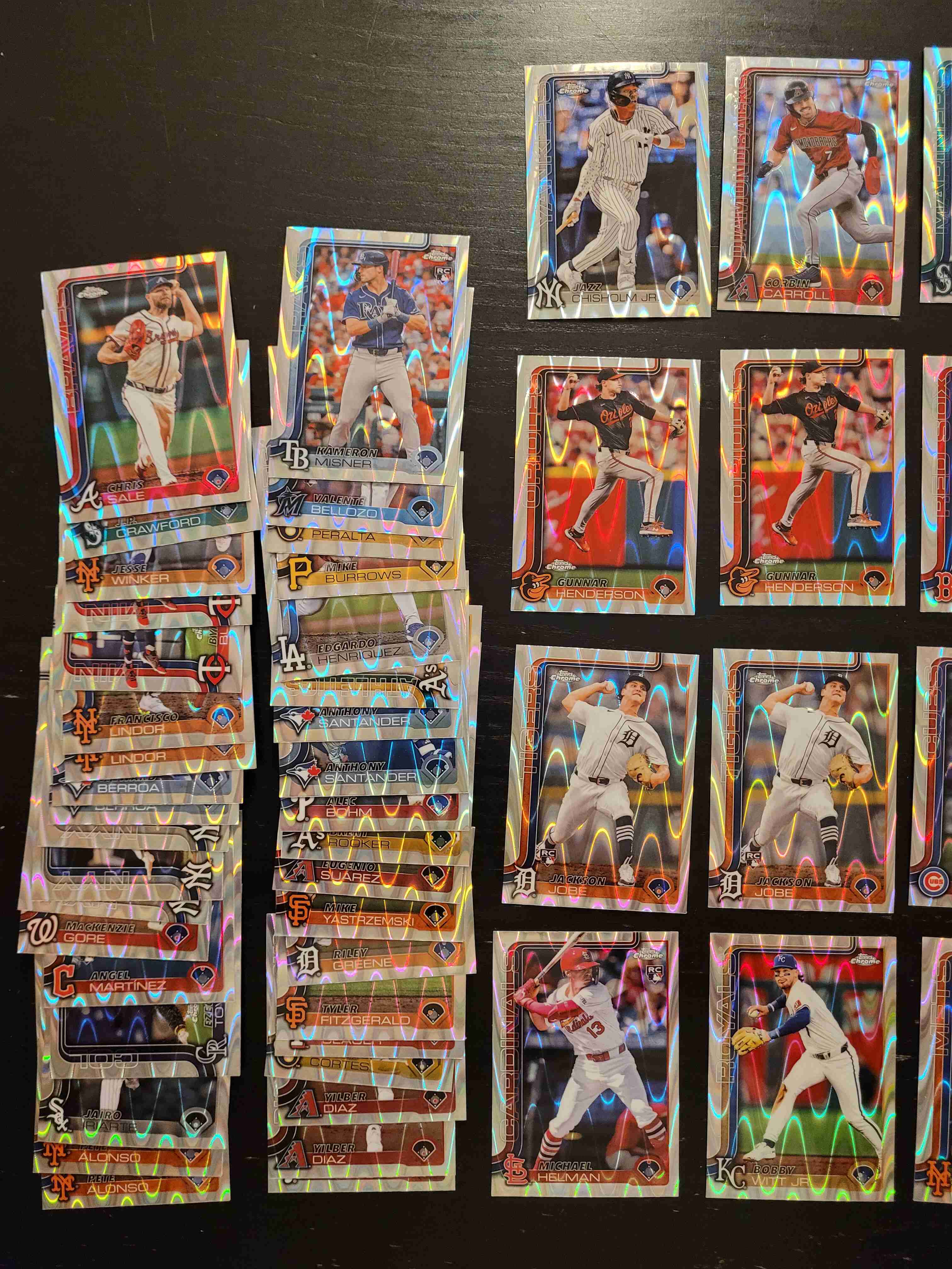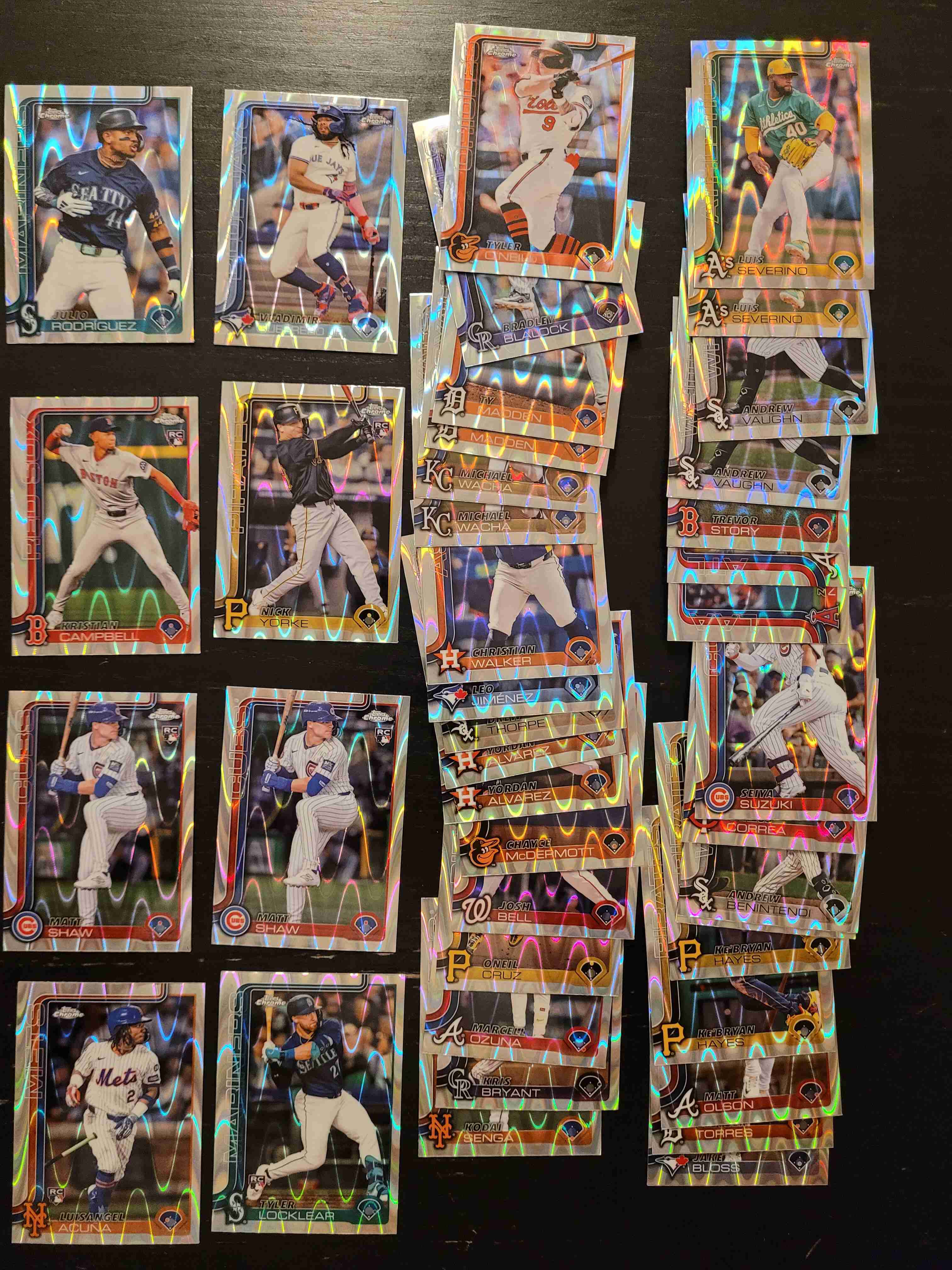 85+ 2025 Topps Chrome Raywave Refractors w RCs. Includes tops stars and RCs.