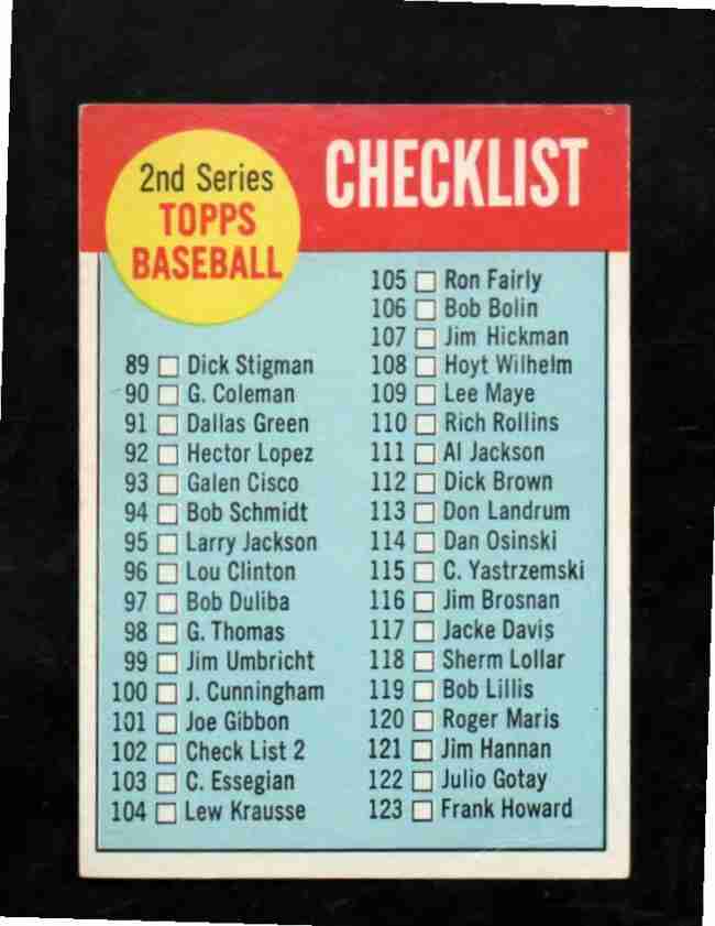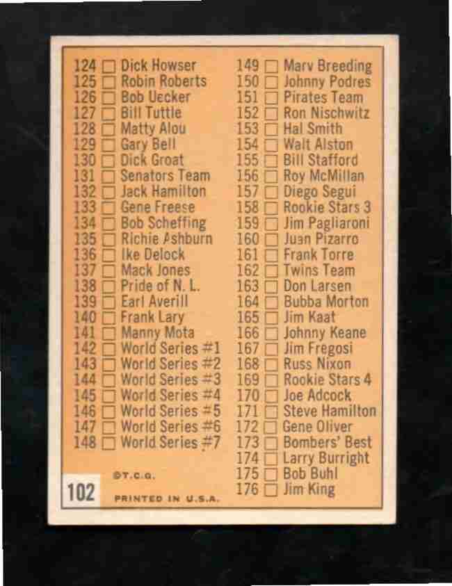 1963 Topps # 102 2ND SERIES CHECKLIST Clean
