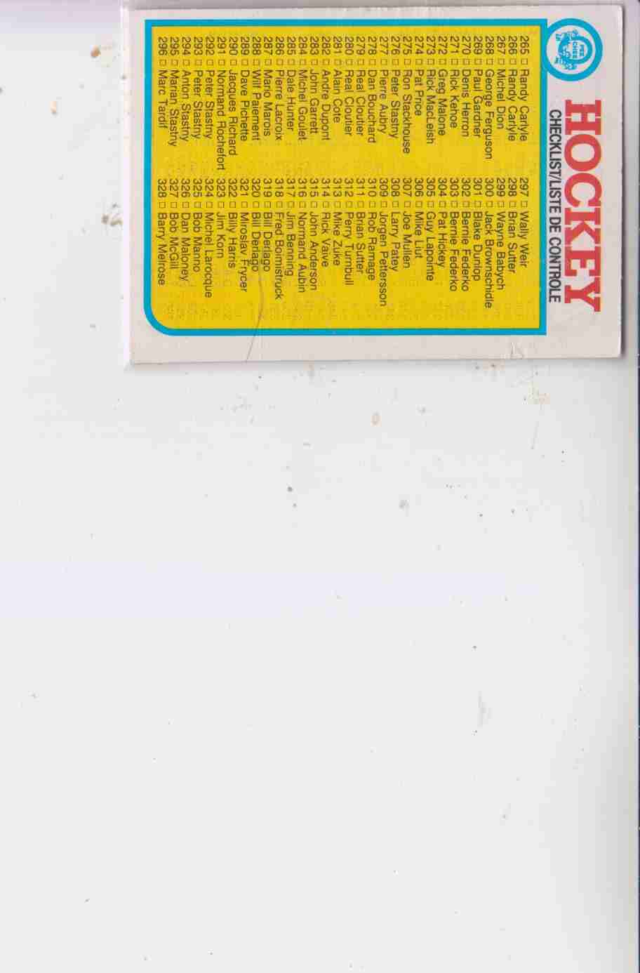 1982 #396 CHECKLIST opc UN MARKED nr-mt