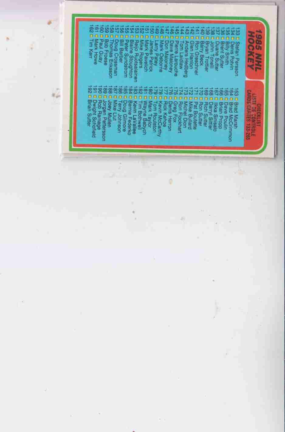 1985 #395 CHECK LIST opc UNMARKED NR-MT