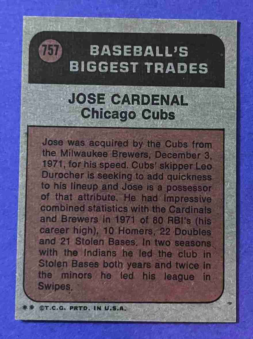 72 Topps JOSE CARDENAL TR Hi #757 ++