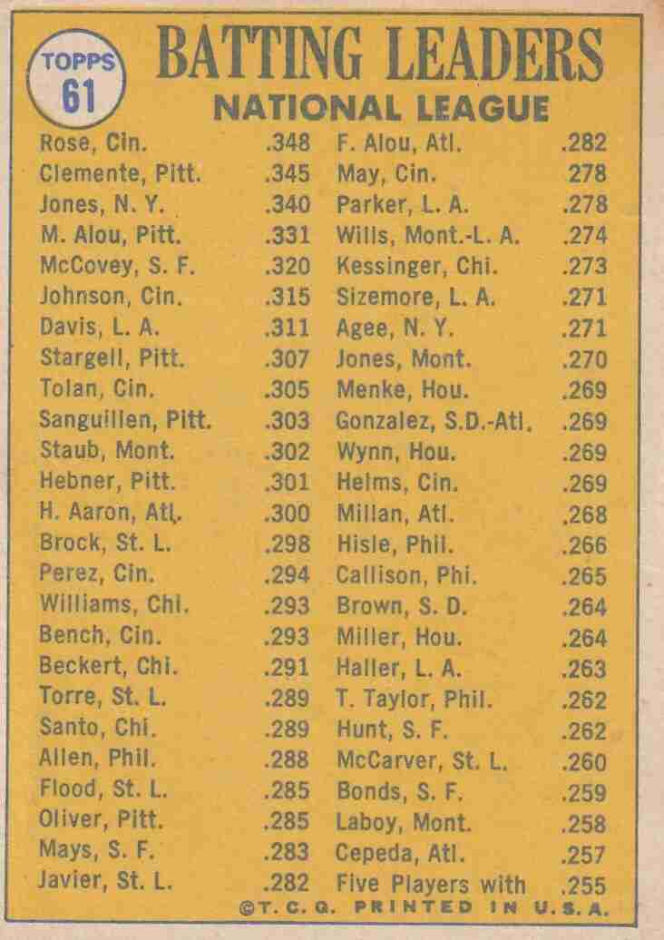 Rose-Clemente-Cleon Jones condition-(EX+) OC//mild tip blemishes//back clean//