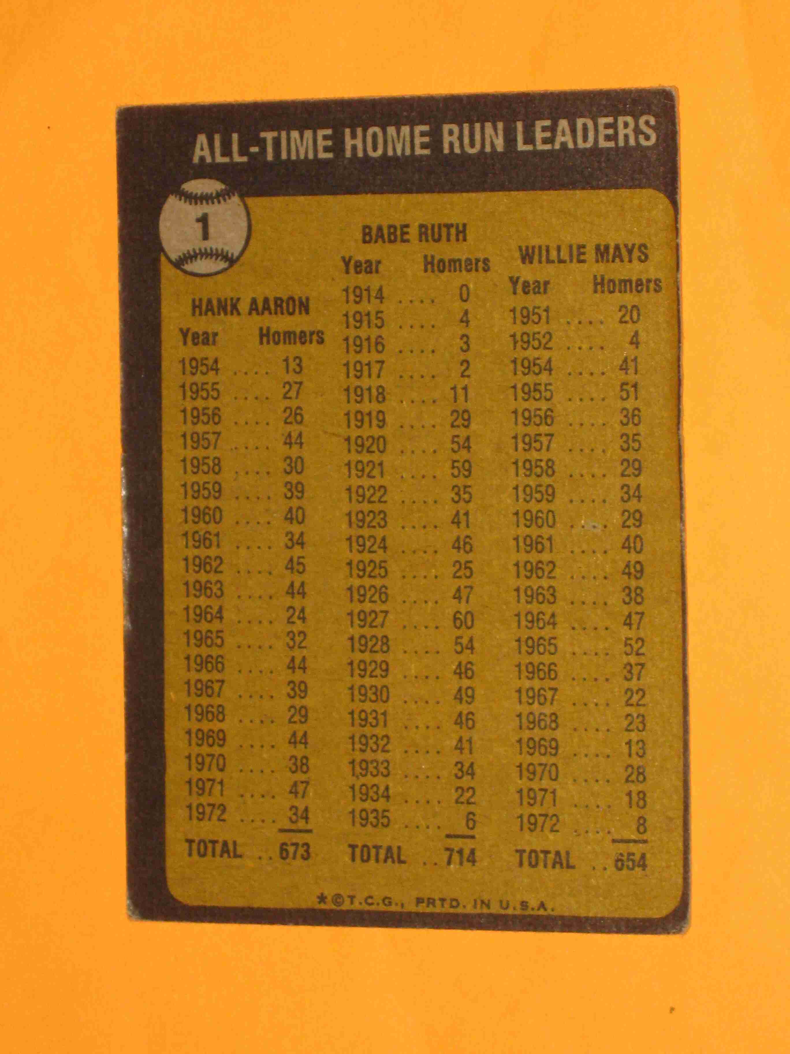 1973 Topps All Time HR Ldrs #1 Ruth Aaron Mays