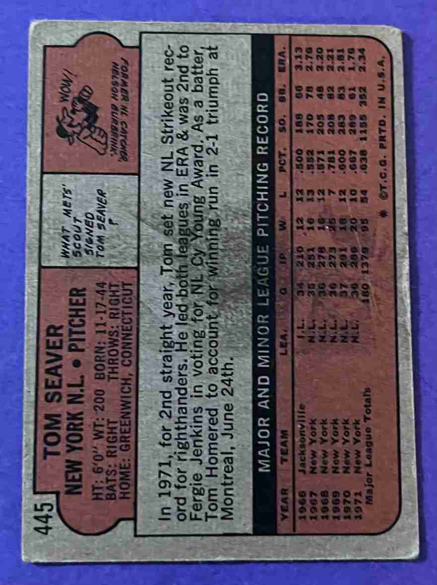 72 Topps TOM SEAVER #445 HOF!