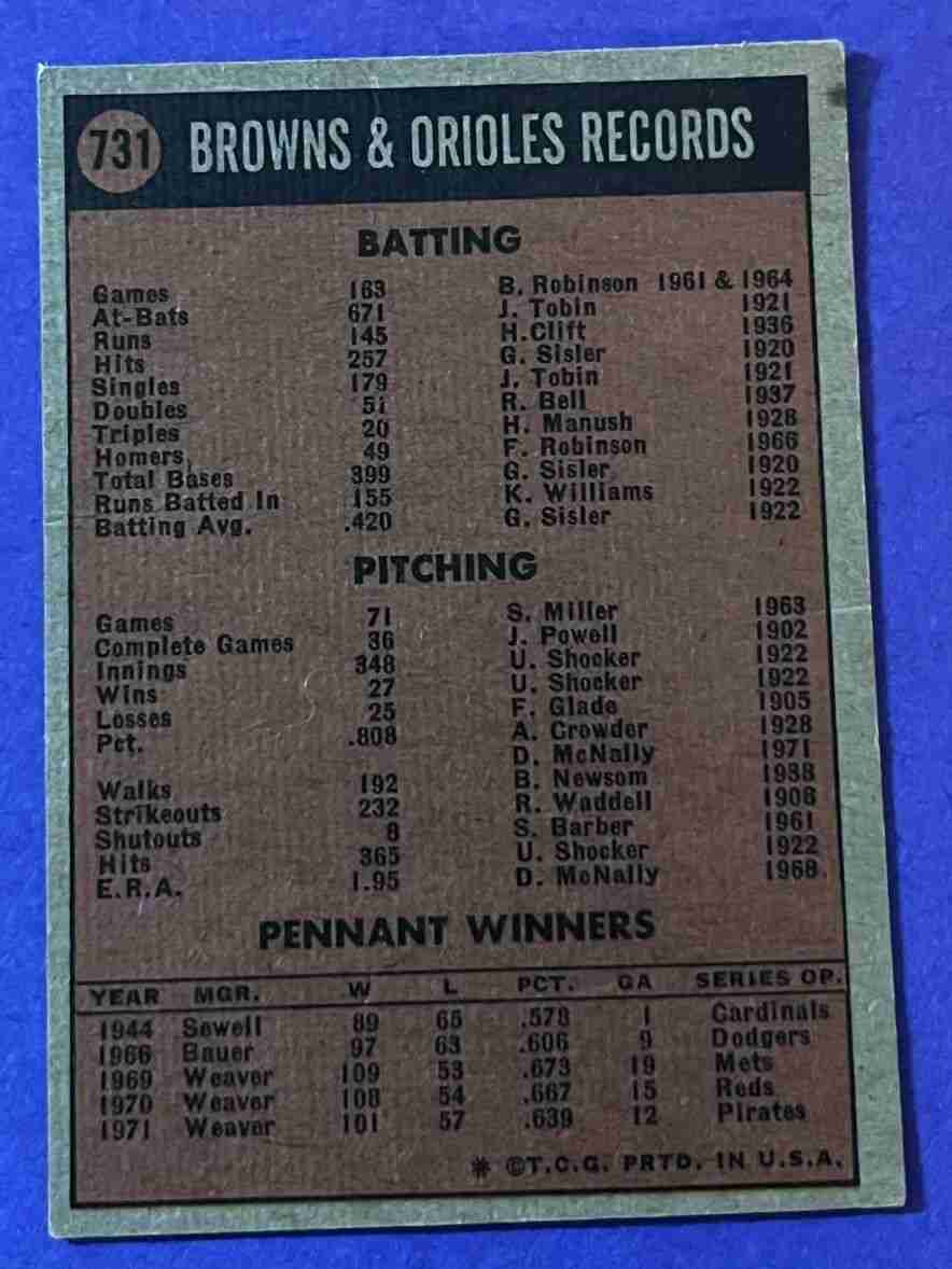 72 Topps ORIOLES TEAM Hi #731 HOFx4!