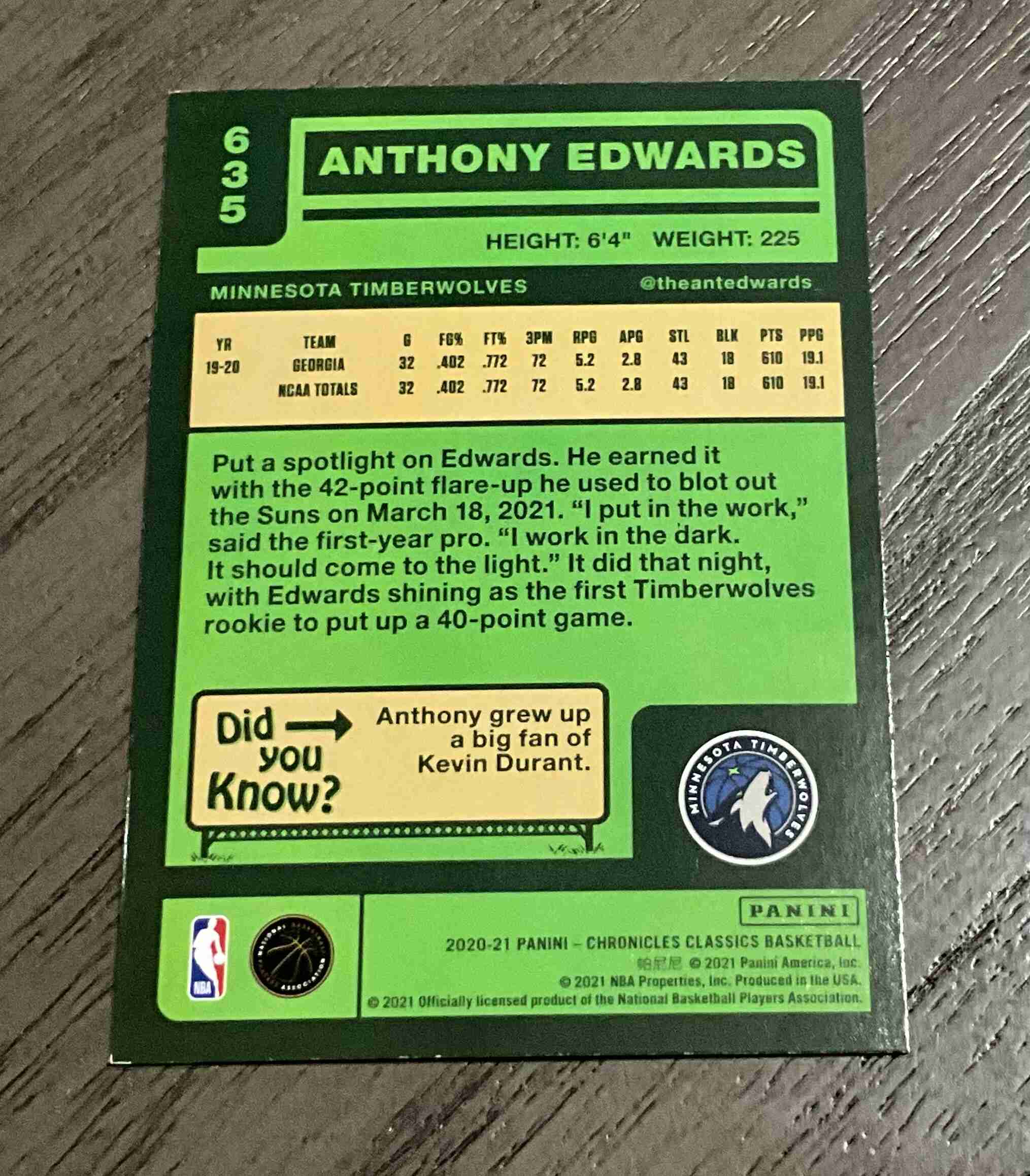 Anthony Edwards Rookie 2020-21 Chronicles Classics