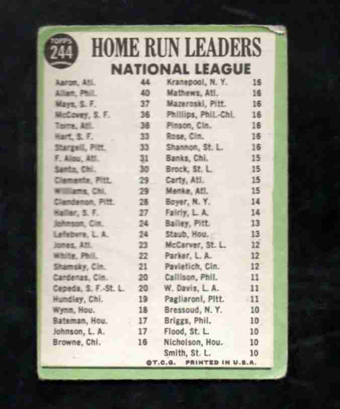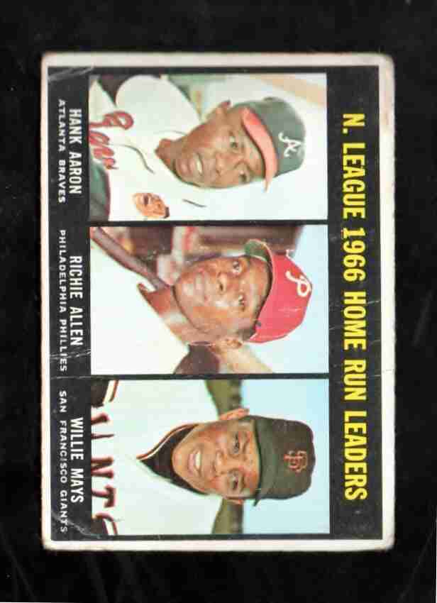 1967 Topps # 244 NL 1966 HR LEADERS Aaron,Allen,Mays