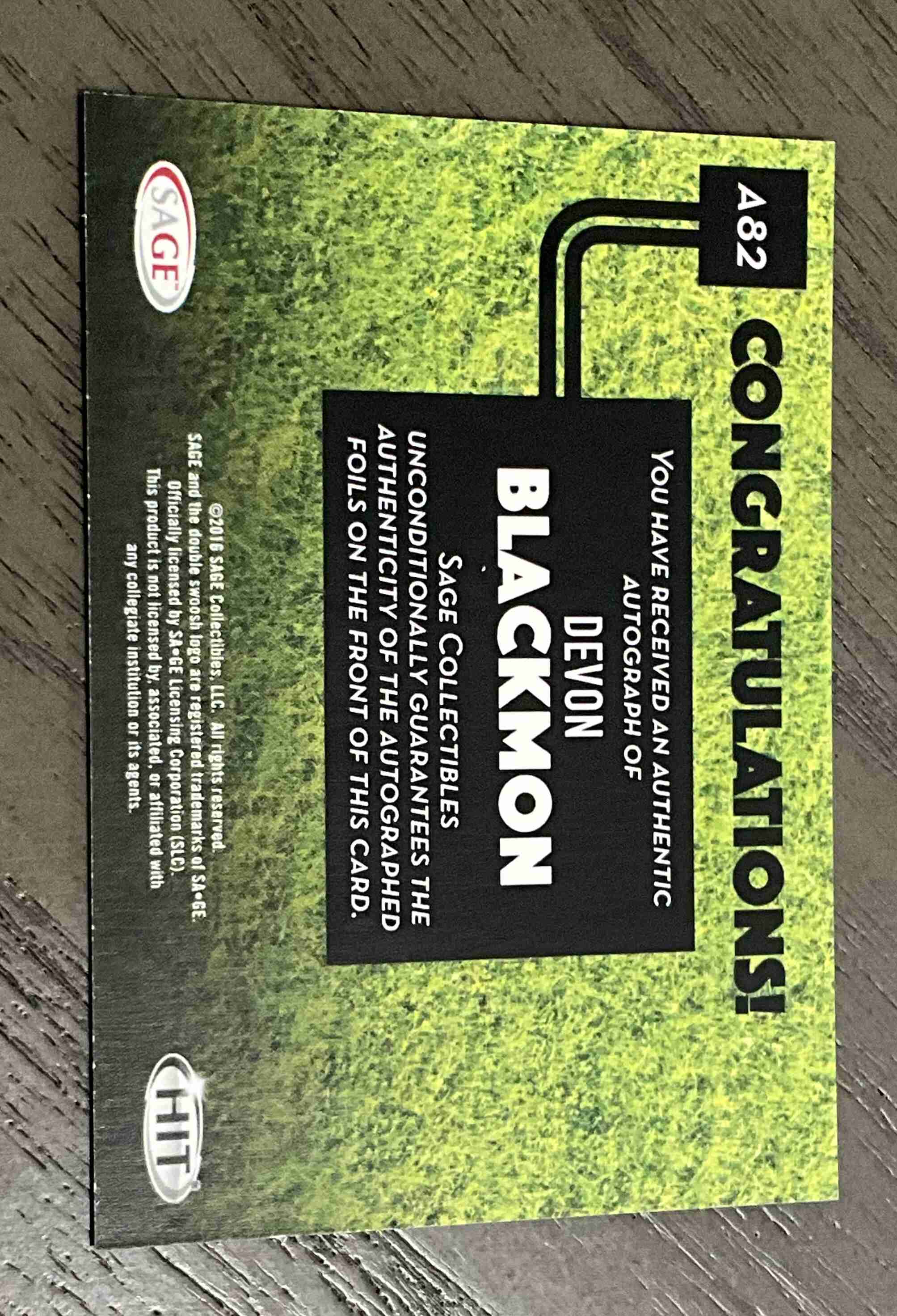 Devon Blackmon Autograph 2016 Sage Hit A82