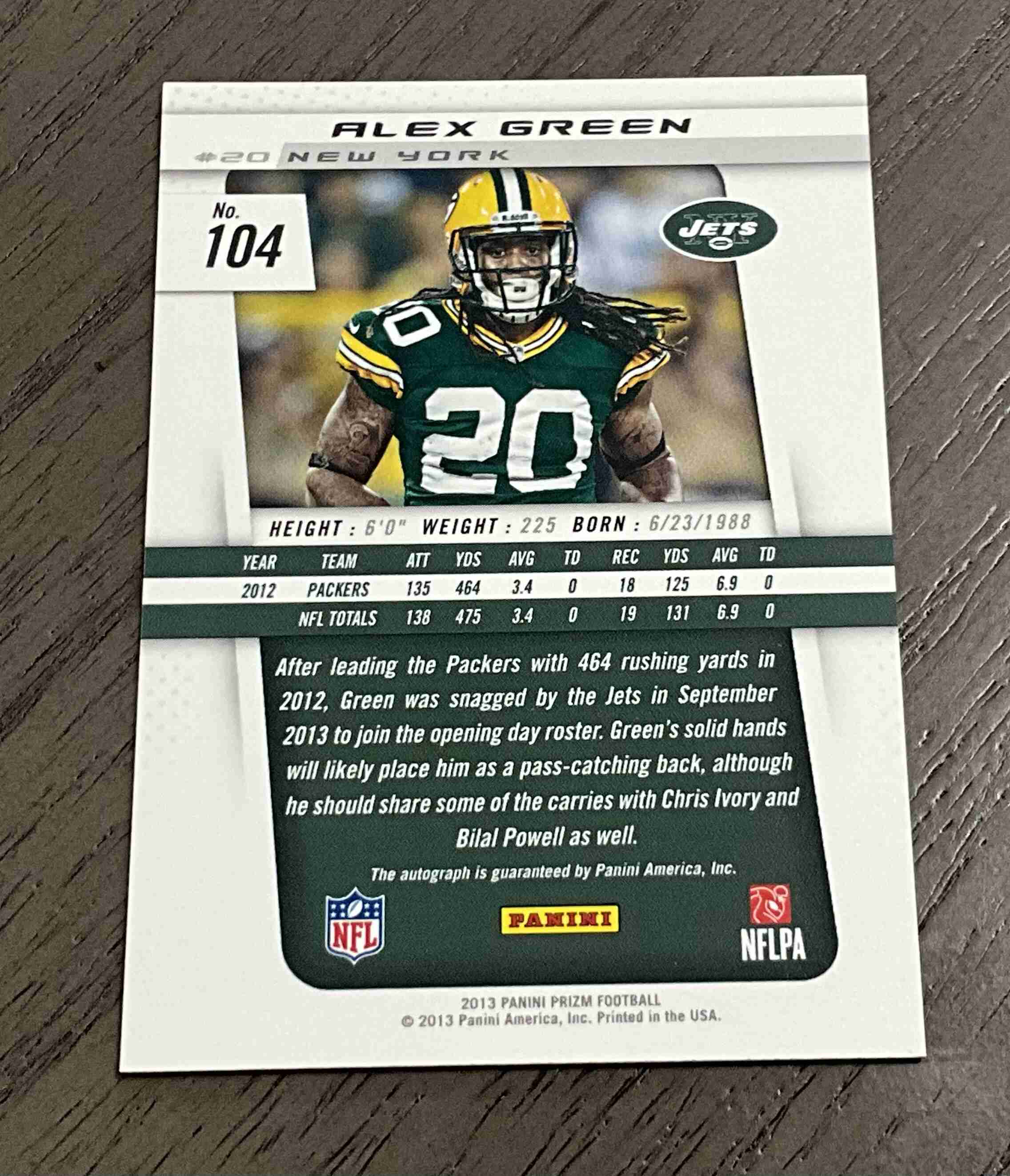 Alex Green Autograph 2013 Panini Prizm Packers Jets