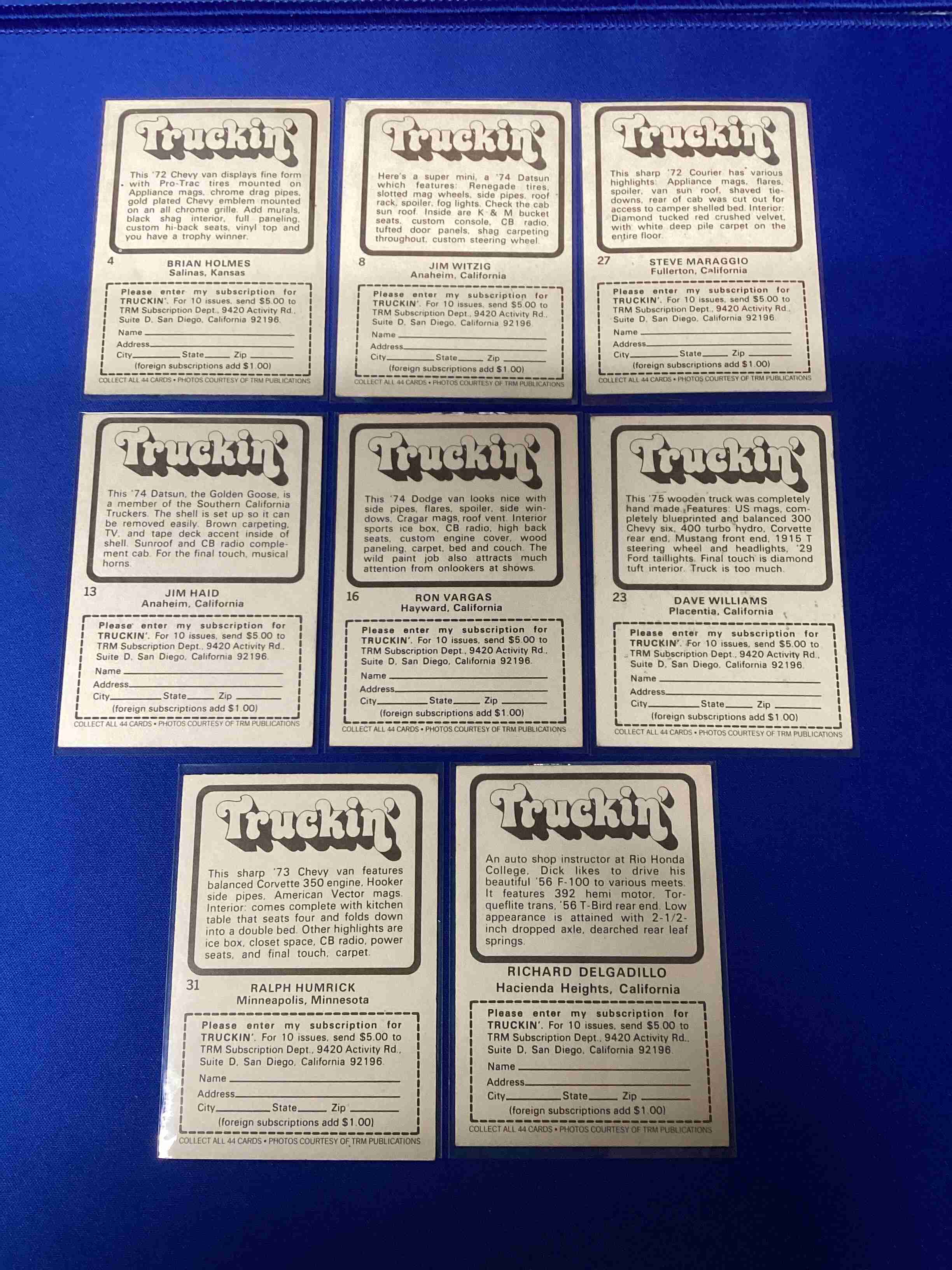 Truckin lot of 8 1975 Donruss Vintage Cards in Great Cond.