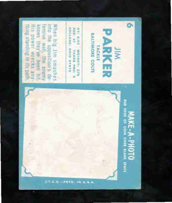 1961 Topps # 6 HOFer JIM PARKER Balt. Colts