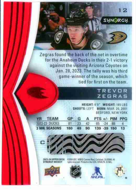 Trevor Zegras [Red] #12 2023 Upper Deck Synergy