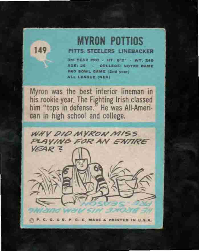 1964 Philadelphia # 149 MYRON POTTIOS Pitt. Steelers
