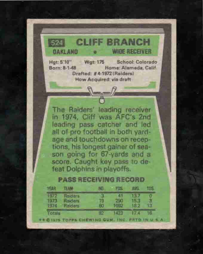 1975 Topps # 524 CLIFF BRANCH Oakland Raiders