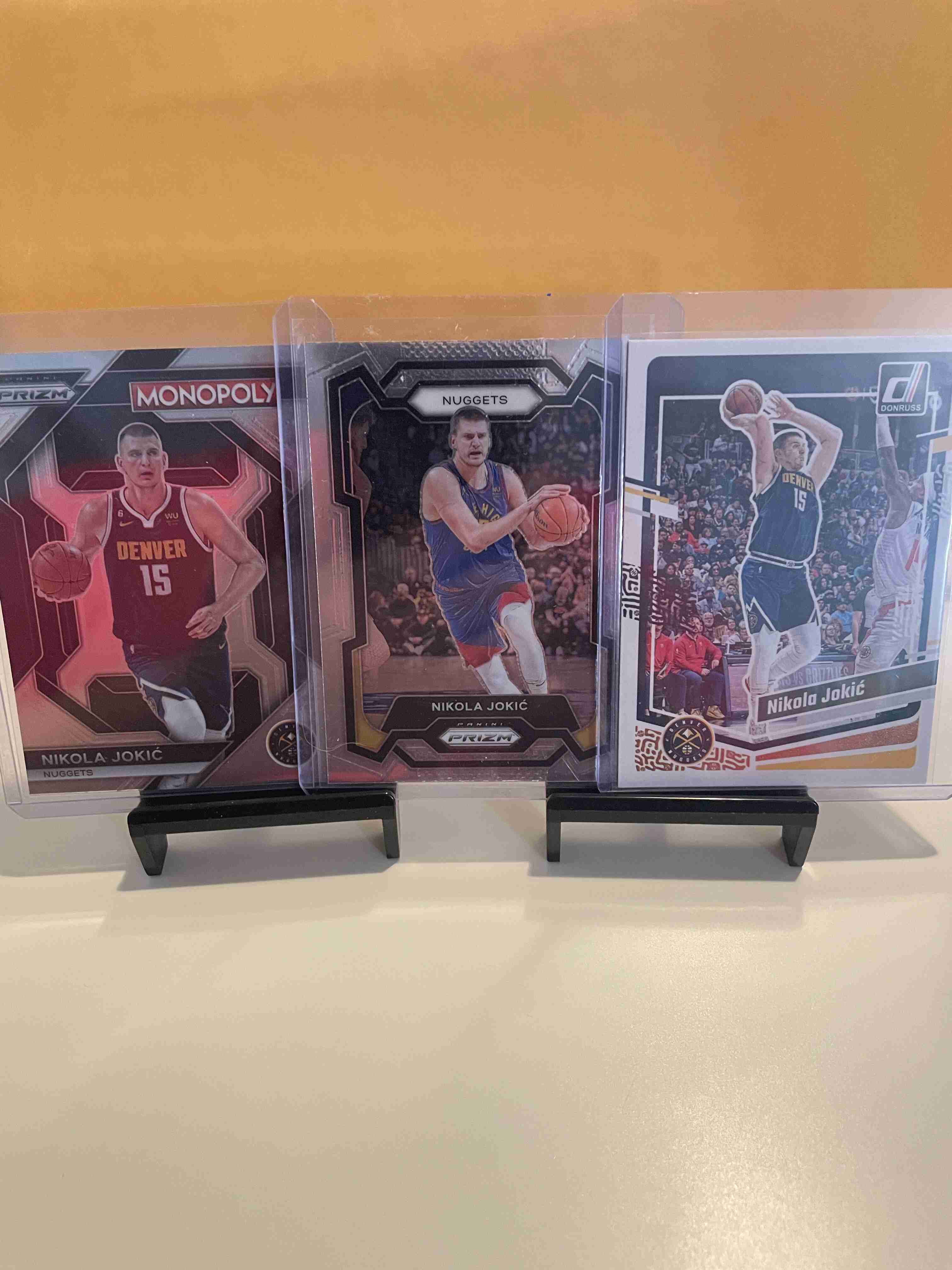 Nikola Jokic 3 card lot, Monopoly, Prizm and Donruss