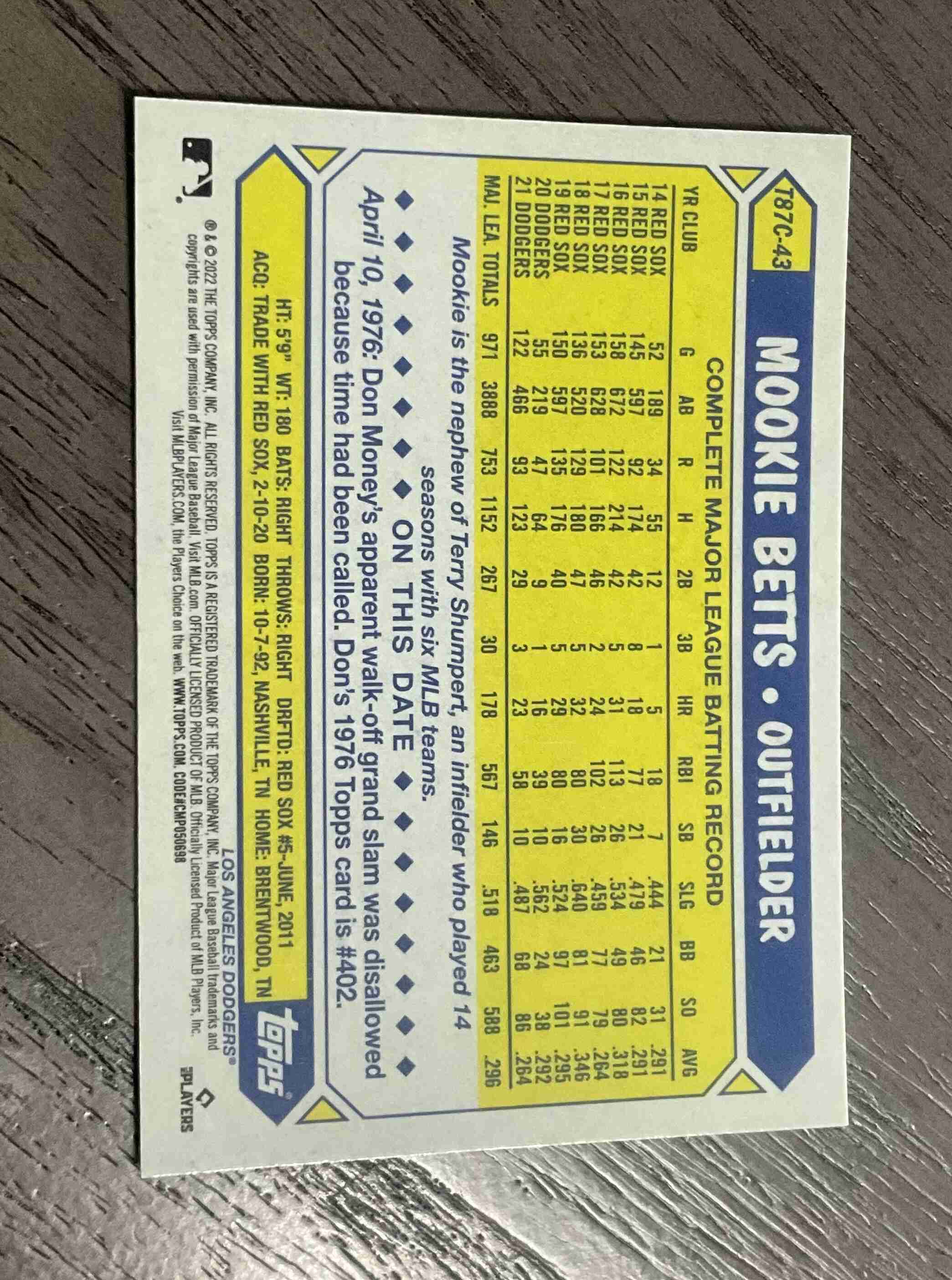 Mookie Betts 2022 Topps Chrome Silver Pack Mojo Dodgers