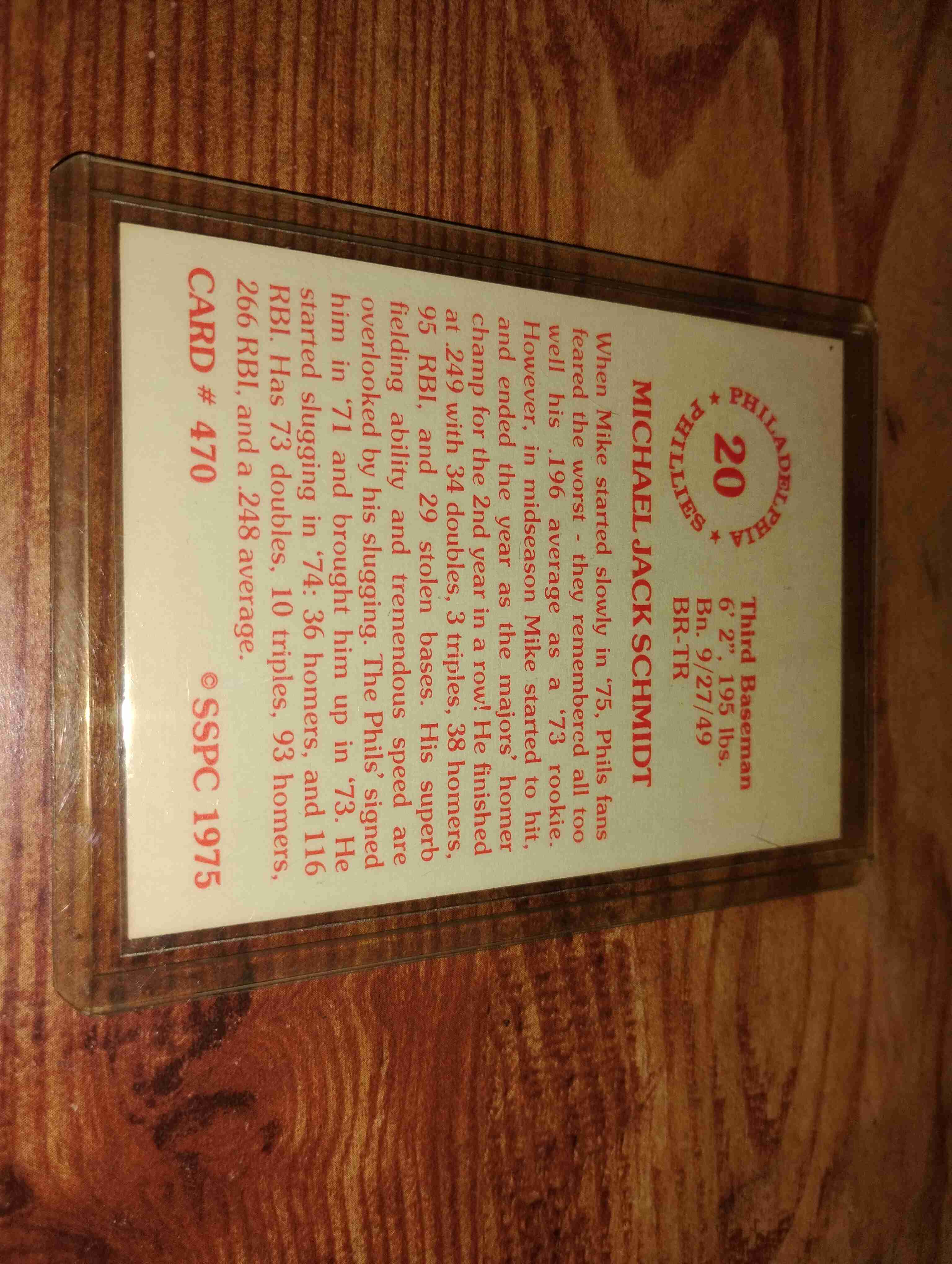 MIKE SCHMIDT 1975 SSPC CARD #20