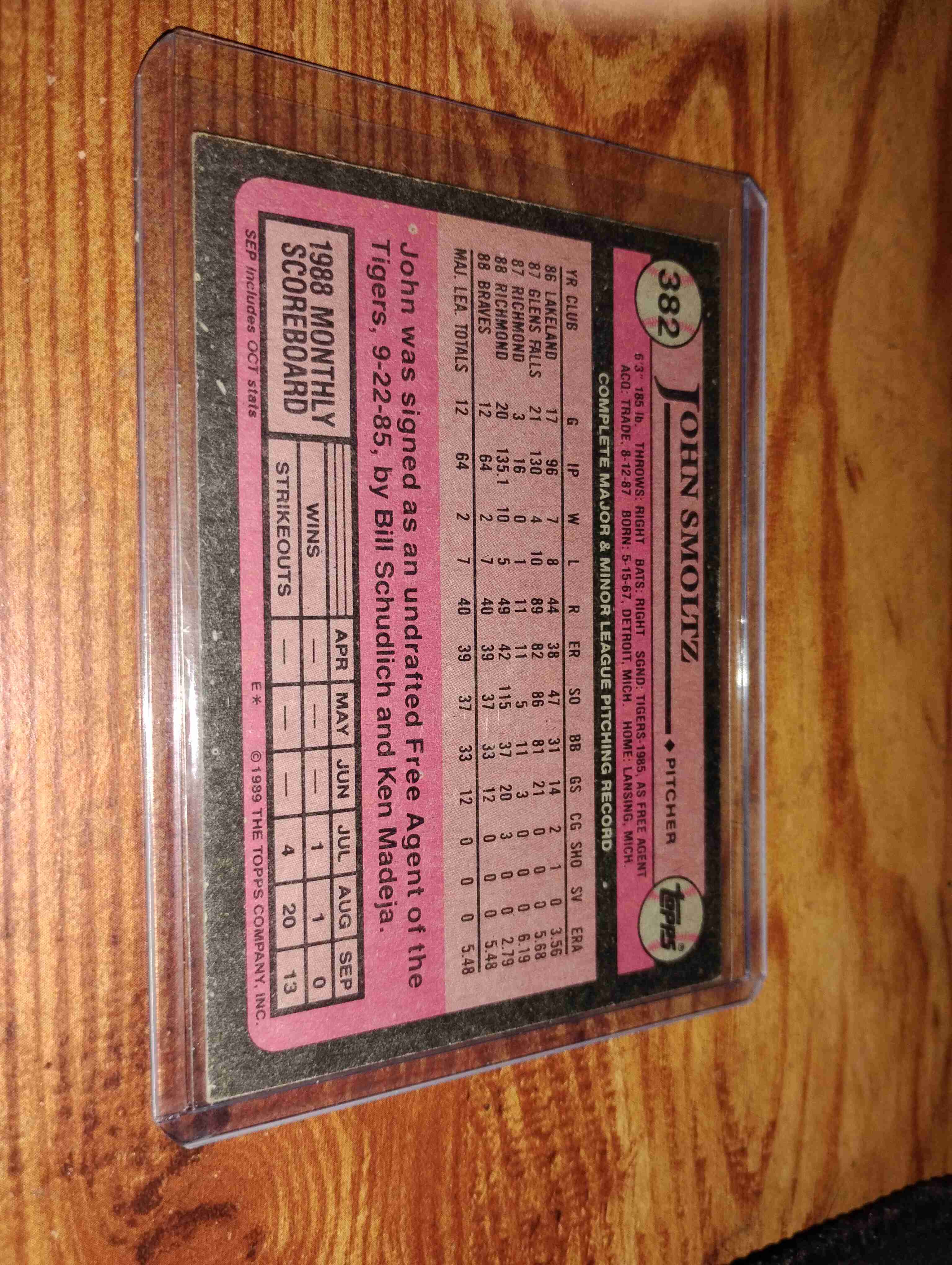 JOHN SMOLTZ 1989 TOPPS ROOKIE CARD #382
