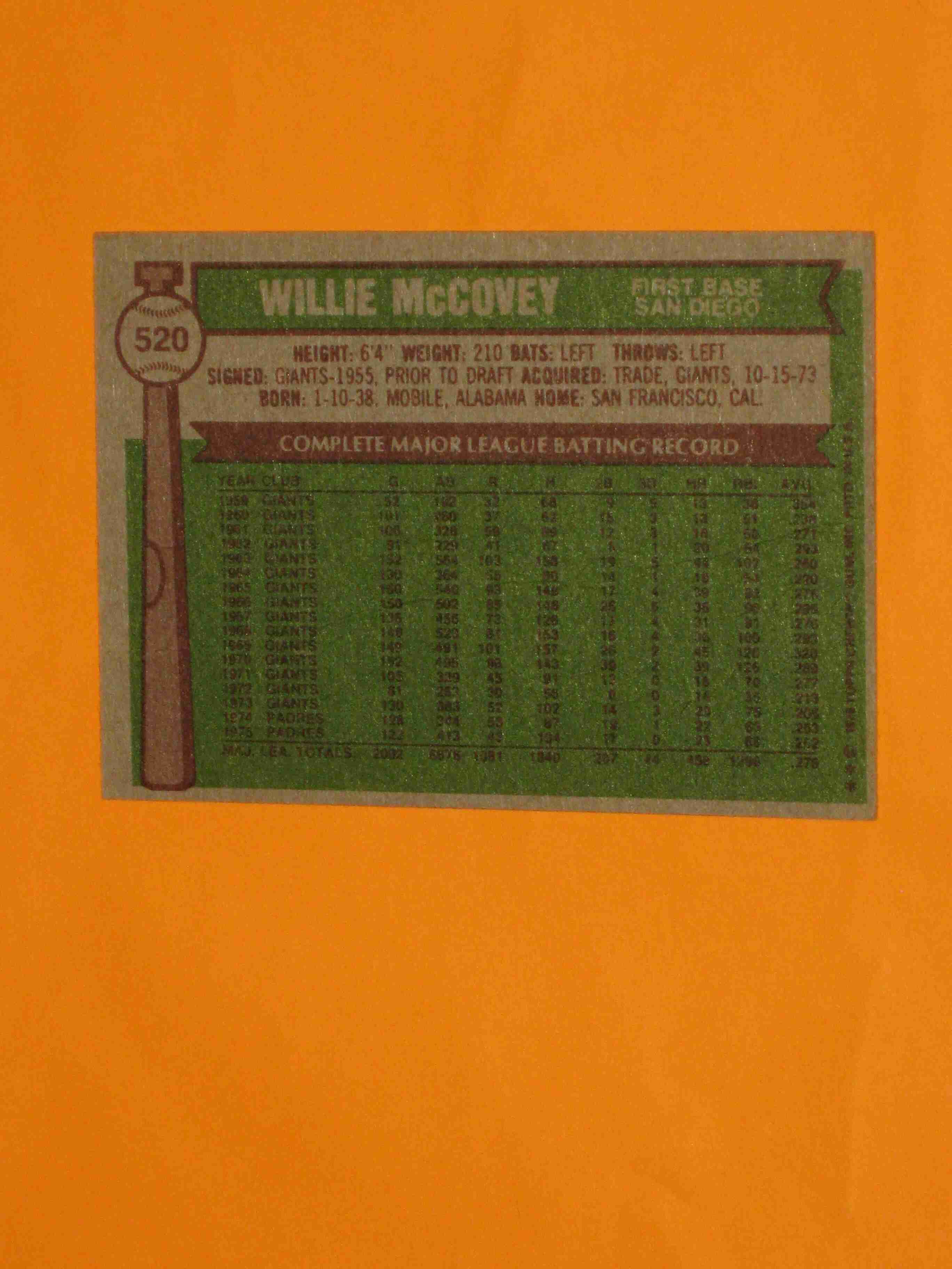 1976 Topps Willie McCovey #520 San Diego Padres