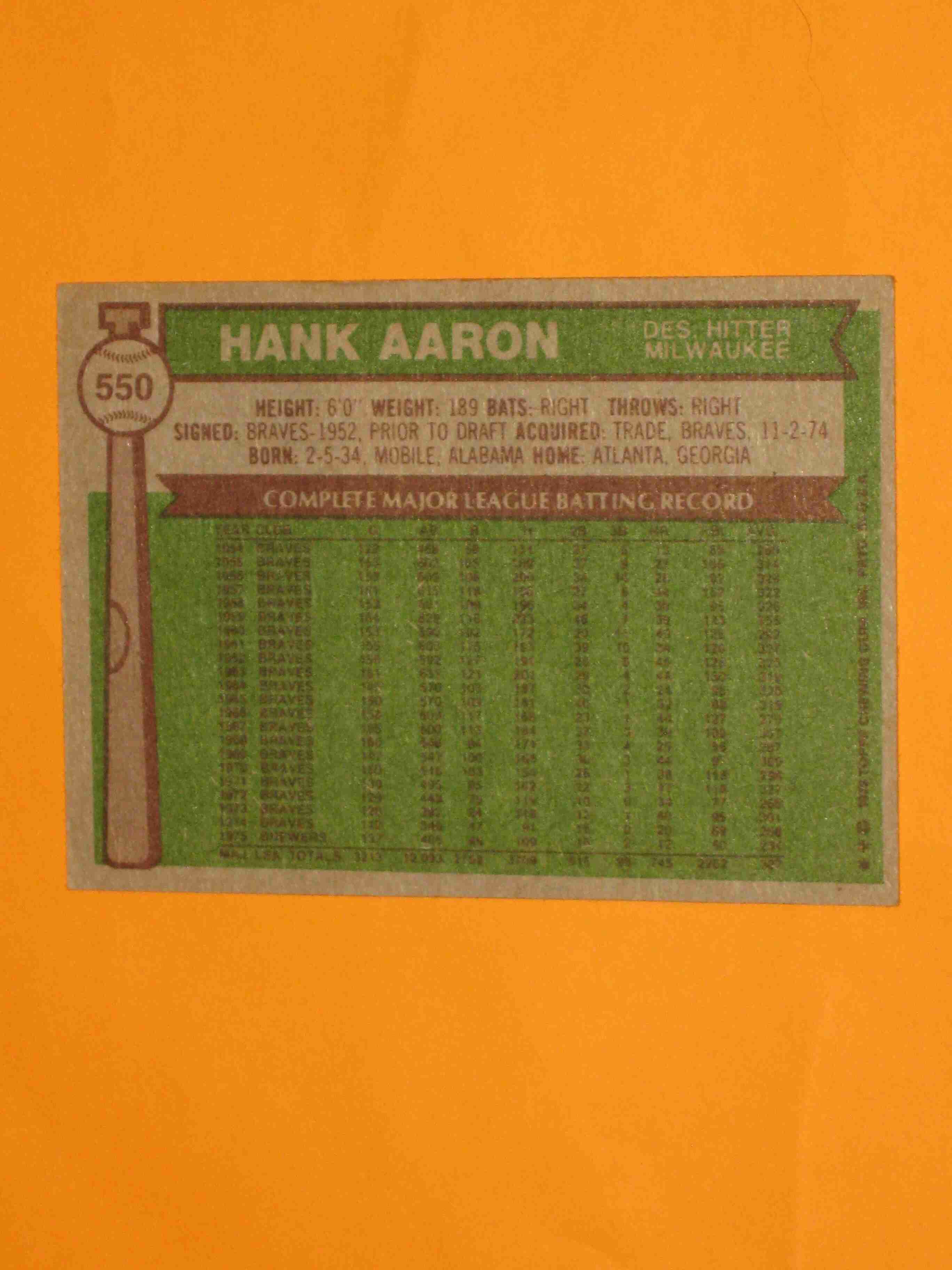 1976 Topps Hank Aaron #550 Milwaukee Brewers
