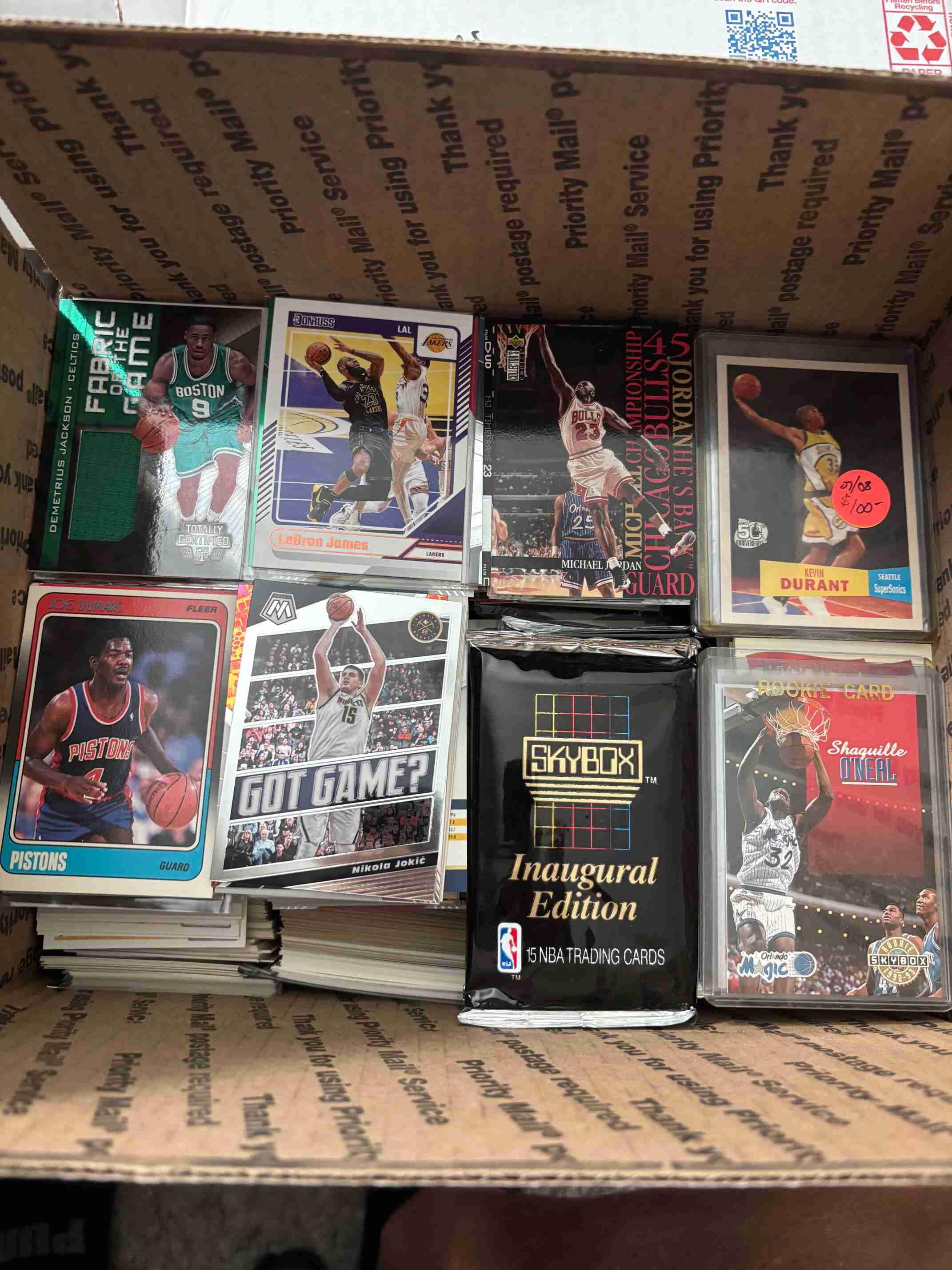 Huge clearance collection of 2500 Basketball cards including vintage, Rookies, Stars, Autographs, Game used, and unopened packs, all in great condition. You will receive everything shown in the photos and more. I am having a complete clearance of my 2,000,000 card collection, so please check out my other auctions for more great deals.