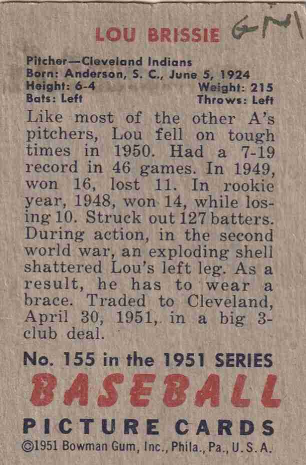 1951 Topps #155 Lou Brissie Cleveland Indians