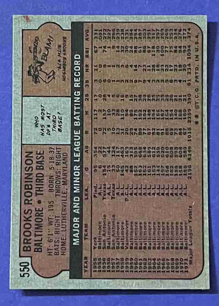 72 Topps BROOKS ROBINSON #550 HOF!