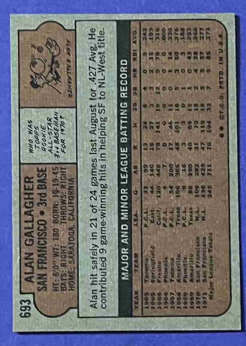 72 Topps ALAN GALLAGHER Hi #693 ++