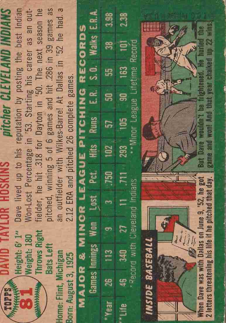 1954 Topps #81 Dave Hoskins Indians