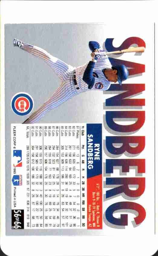 Ryne Sandberg 1993 Fleer Fruit of the Loom #56 Chicago Cubs