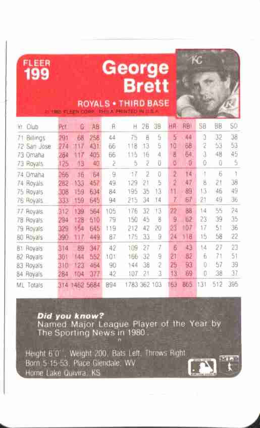 George Brett #199 1985 Fleer