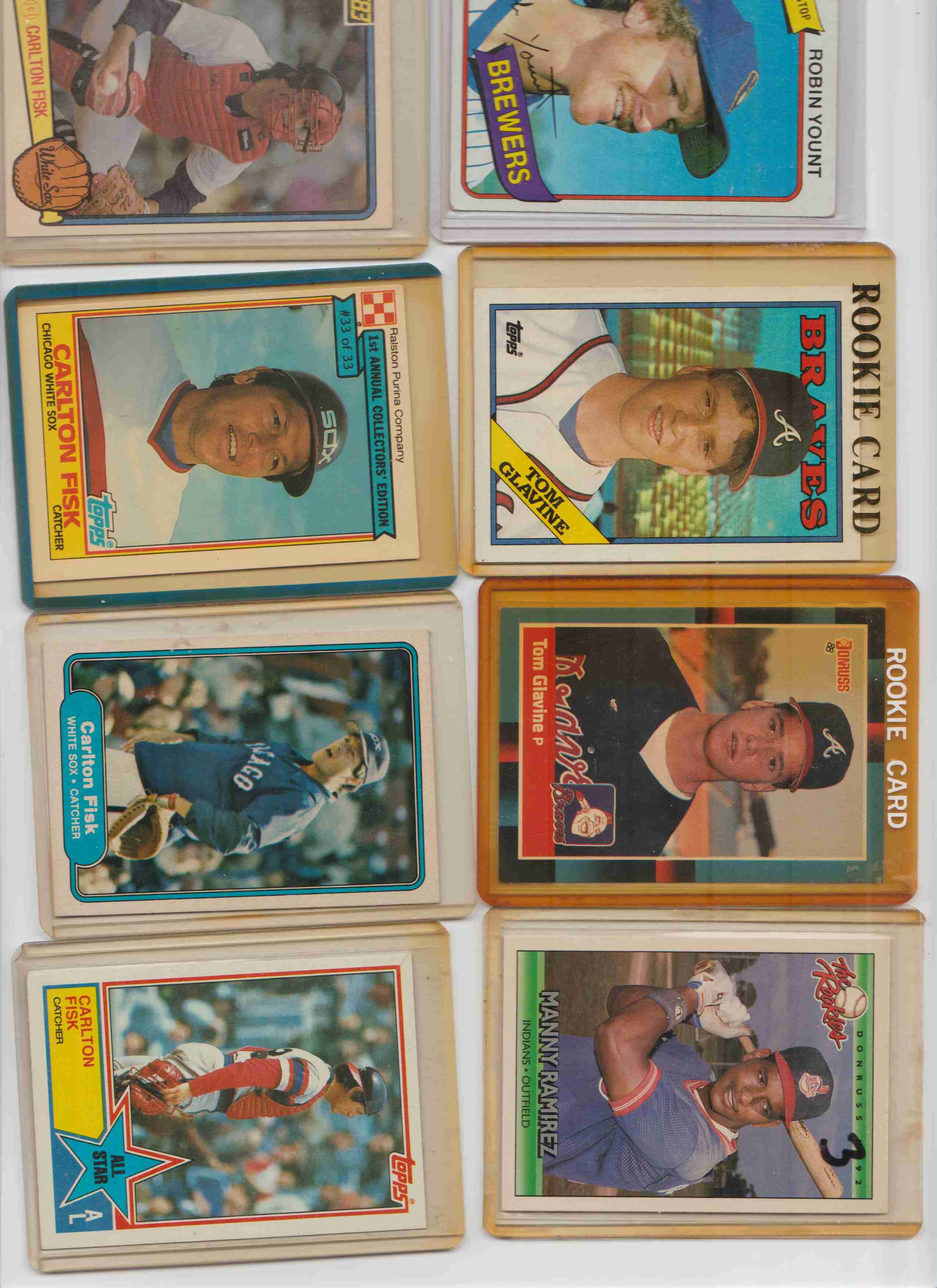 A22 CARD LOT OF HF AND OTHER STARS LIST INCLUDES STARS LIKE DAVE STIEB ANDRE DAWSON DAVE PARKER FERGIE JENKINS ALAN TRAMMELL ROOKIE CARD OZZIE SMITH ROOKIE CARD ROBIN YOUNT ROOKIE CARD 3 TOM GLAVINE ROOKIE CARD MANNY RAMIREZ ROOKIE CARD 4 CARLTON FISK CARDS PLUS 6 OTHER STARS OR FURE STARS