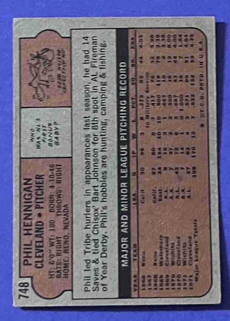72 Topps PHIL HENNIGAN Hi #748 ++