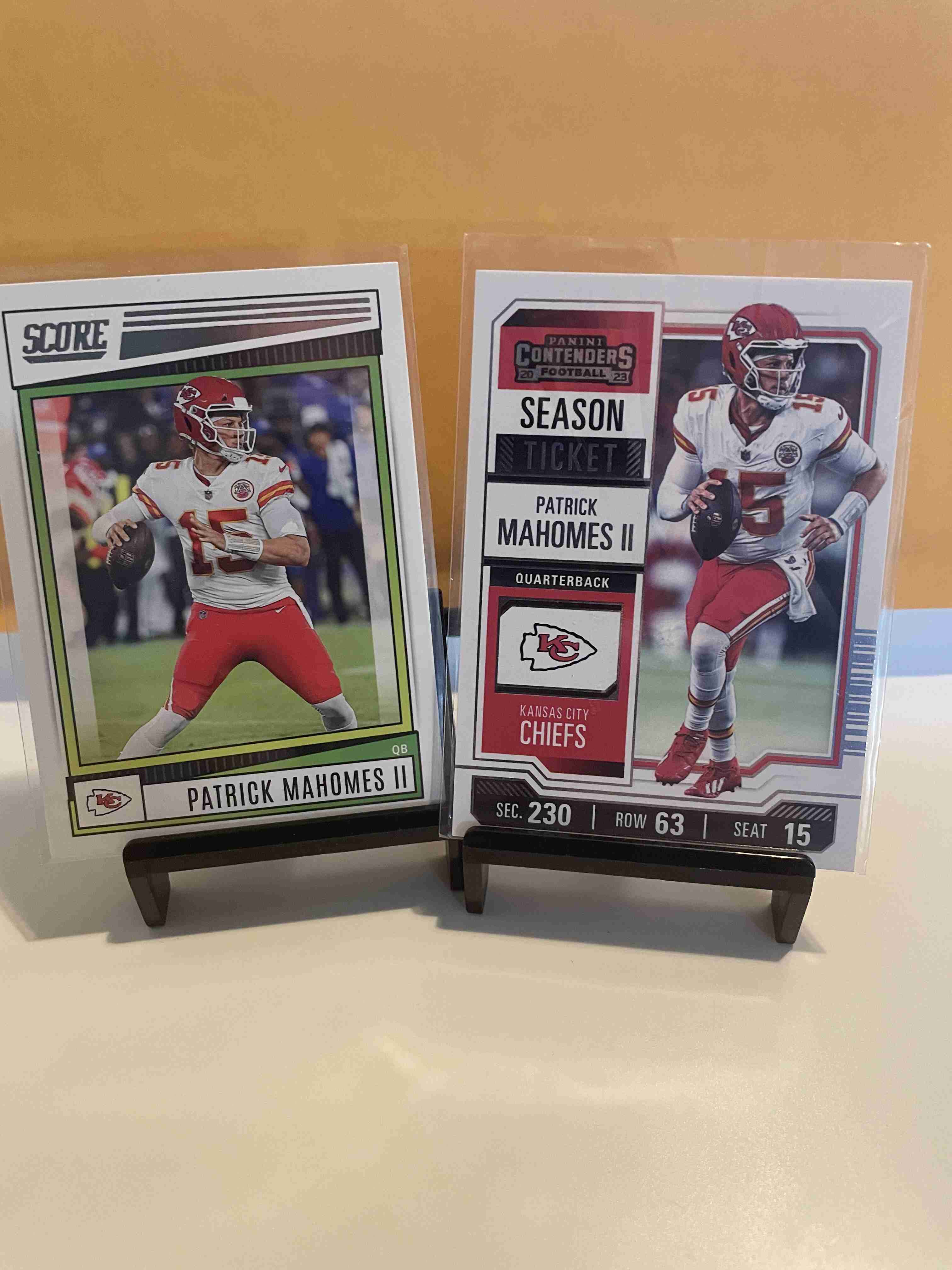 Patrick Mahomes 2 card lot score, contenders (eb)