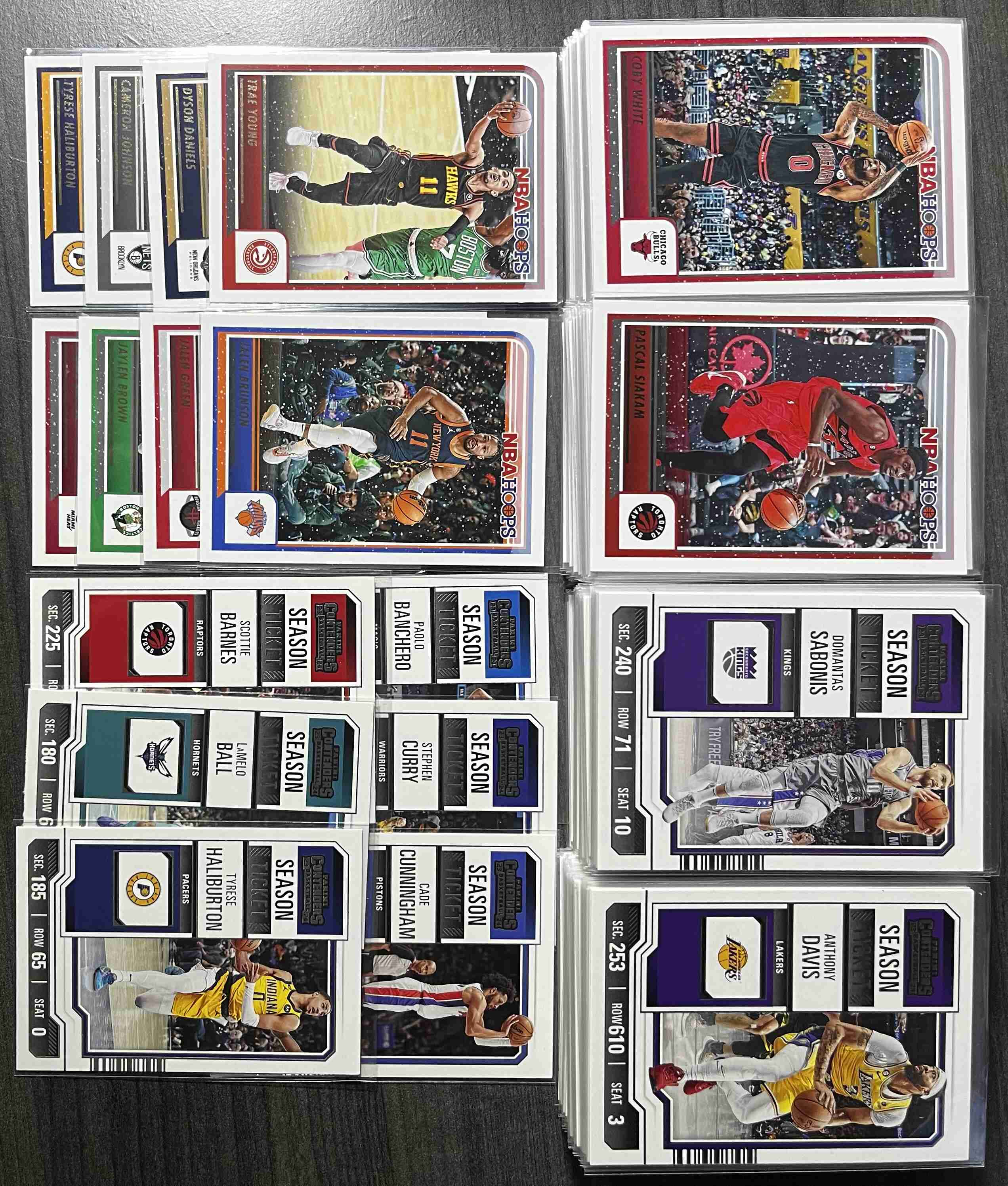 Roughly 650 panini contenders & nba hoops 2023/2024 with rookies stars and some inserts. Not an NBA collector so I have no idea what is here. Shipping will be USPS.