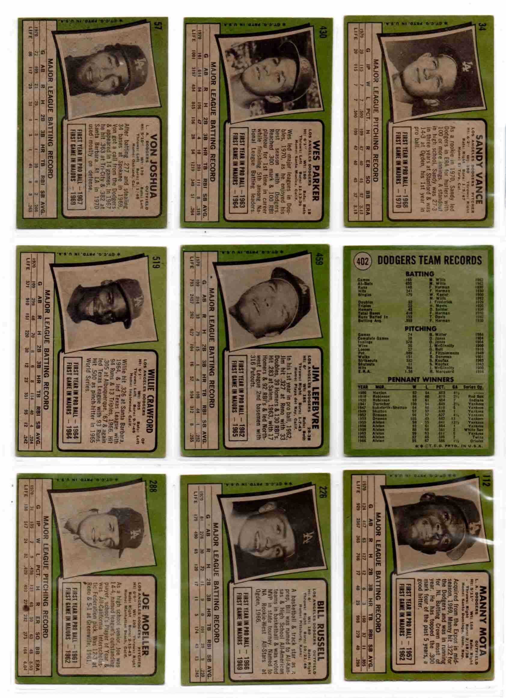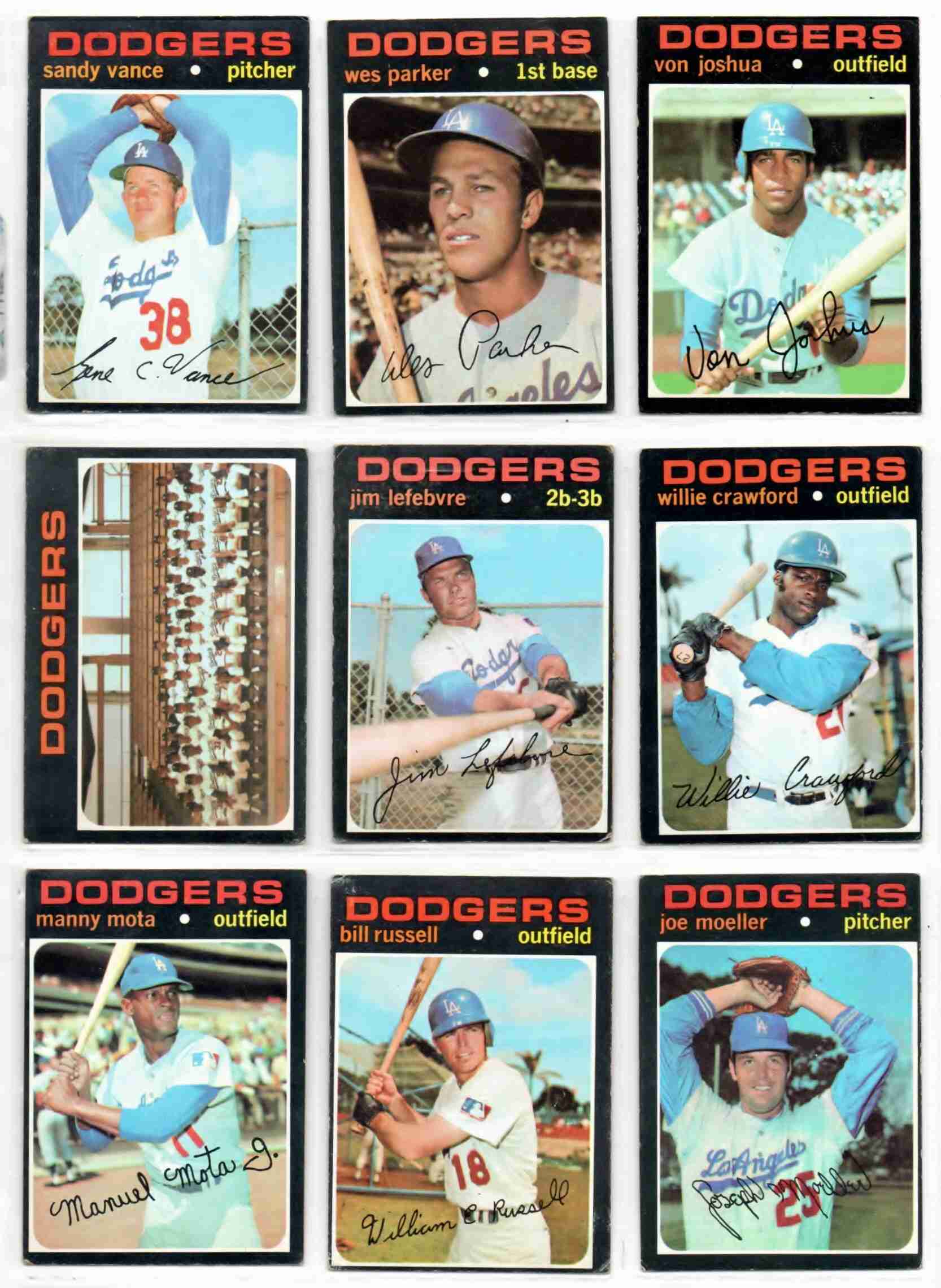 1971 Topps LOS ANGELES DODGERS Lot of 9 Different