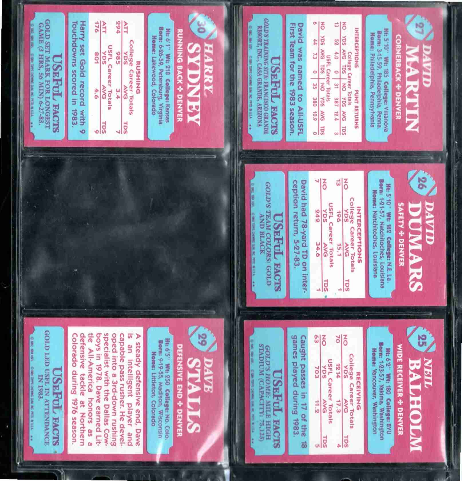1984 Topps USFL DENVER GOLD Lot of 5 Different