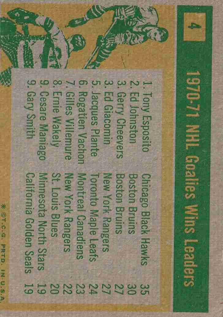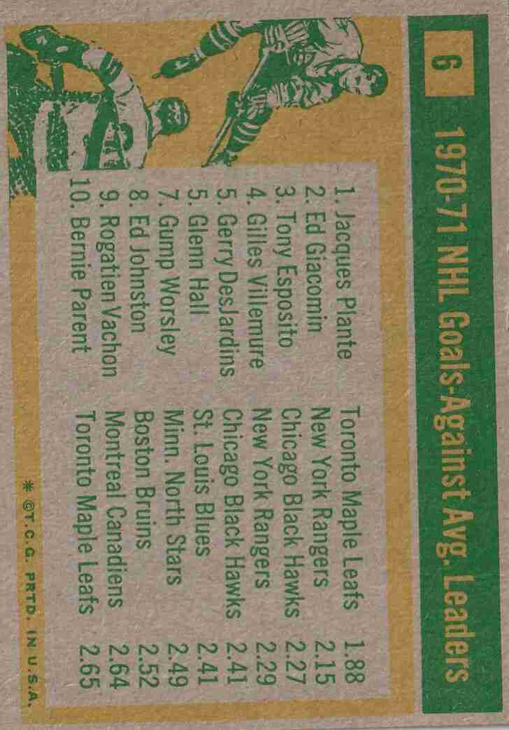 #4 Goalie Win Leaders (VG+/EX) corner creases #6 Goals Against (VG+) crease